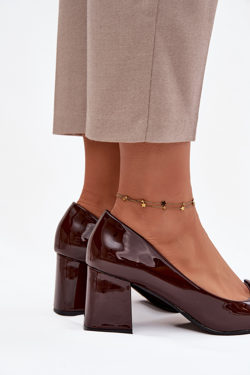 Lakované lodičky na opätku s dekoráciou čokoládové Isoline