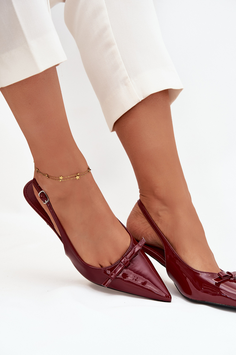 Lakované lodičky na opätku s mašličkou bordová Olvena
