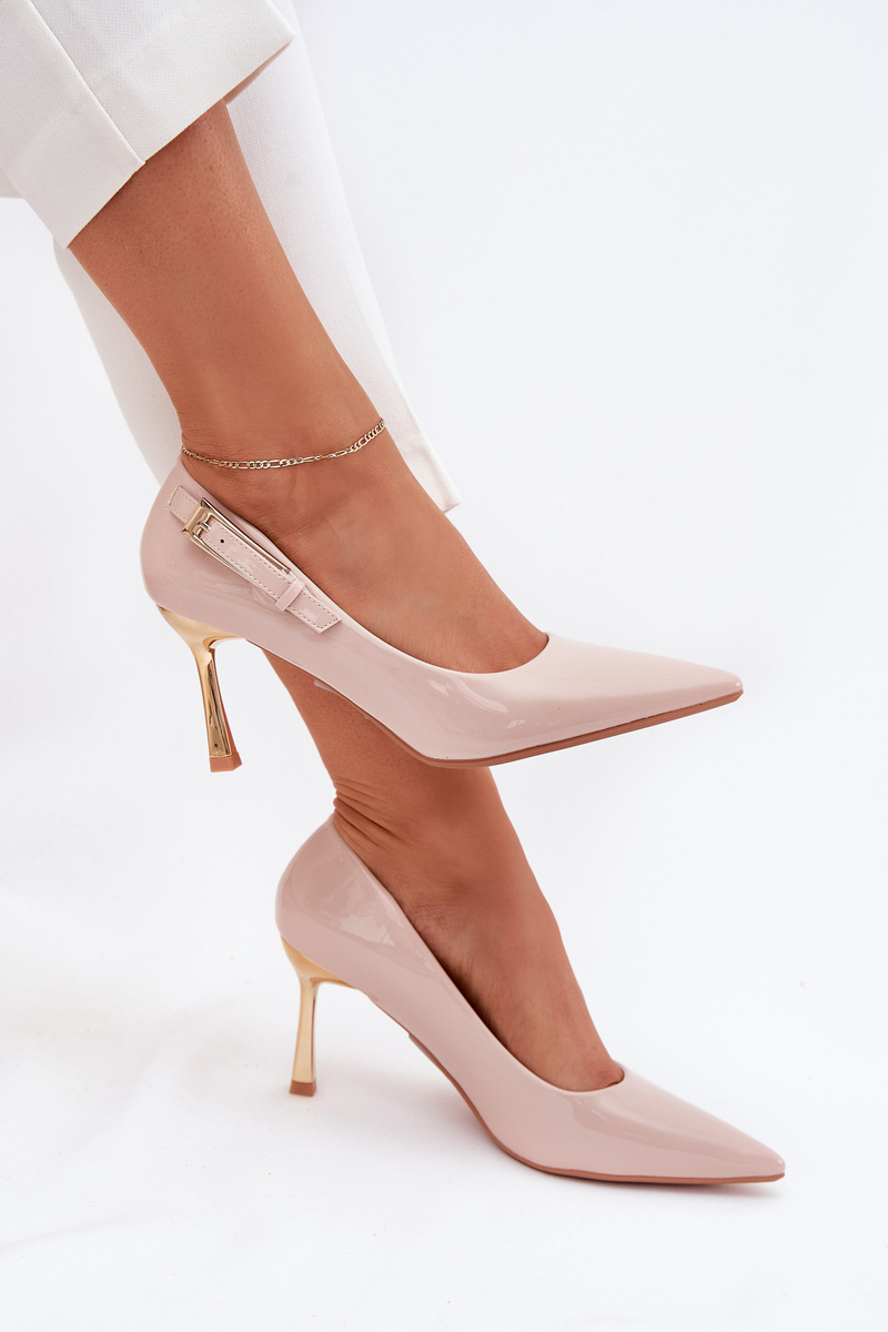 Lakované Lodičky So Zlatou Sponou Béžové Mivira