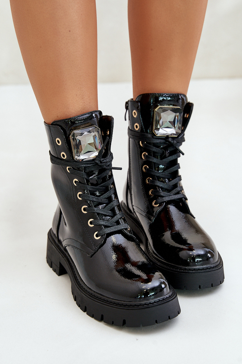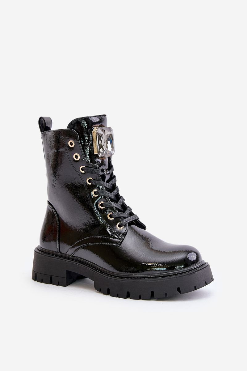 Lakované Pracovné Topánky Izolované S Ozdobou Čierne Depisa