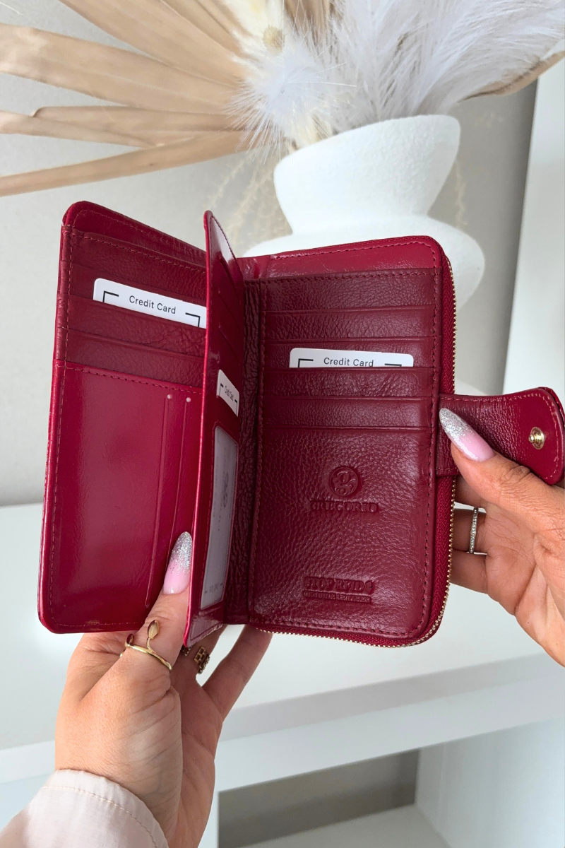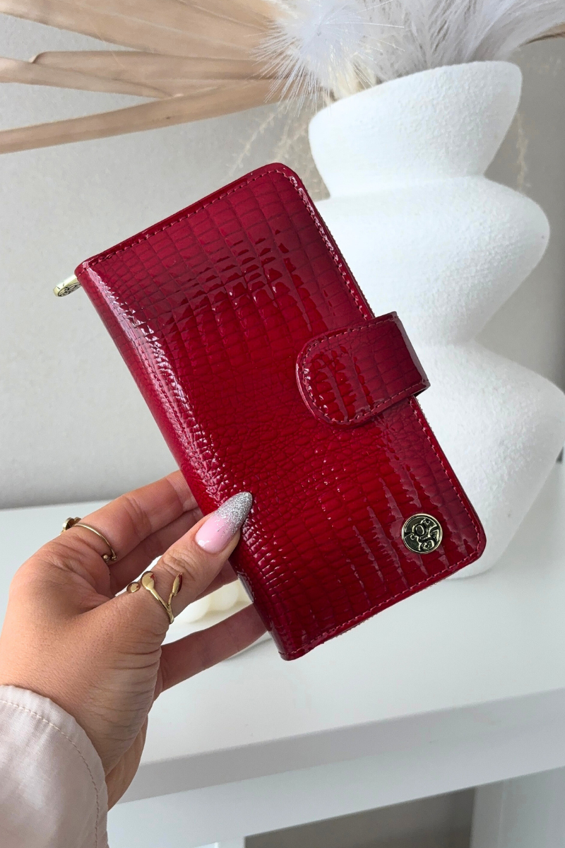 Lakovaný dámsky peňaženka s reliéfnym a zlatým detailom červená Evlinne