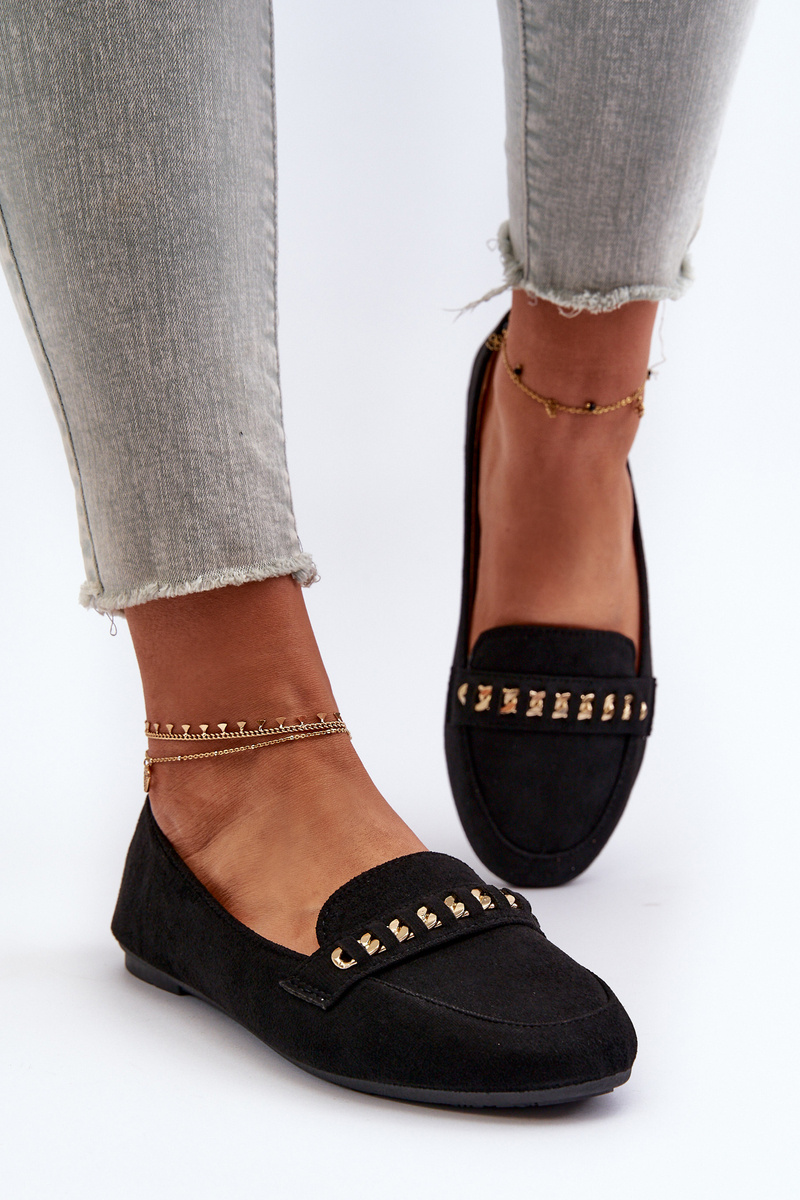 Lesklé Dámske Mokasíny S Reťazou Čierne Aredilla