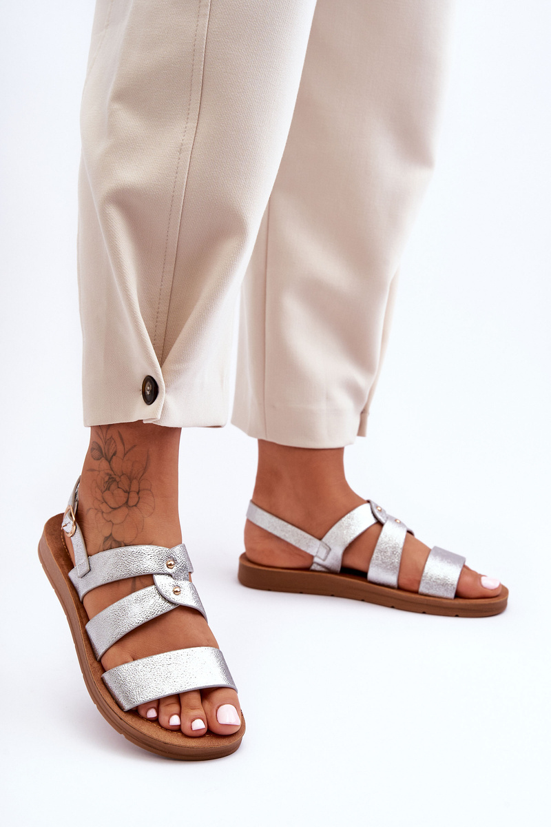Pohodlné, lesklé dámske sandále boli vyrobené z ekologickej kože s ohľadom na detail. Pripevnený nastaviteľným pásom s prackou. Jemná platforma robí topánky mimoriadne stabilné. Tieto sandále sú perfektným strihom pre horúce dni. Pri výbere veľkosti postupujte podľa tabuľky veľkosti.