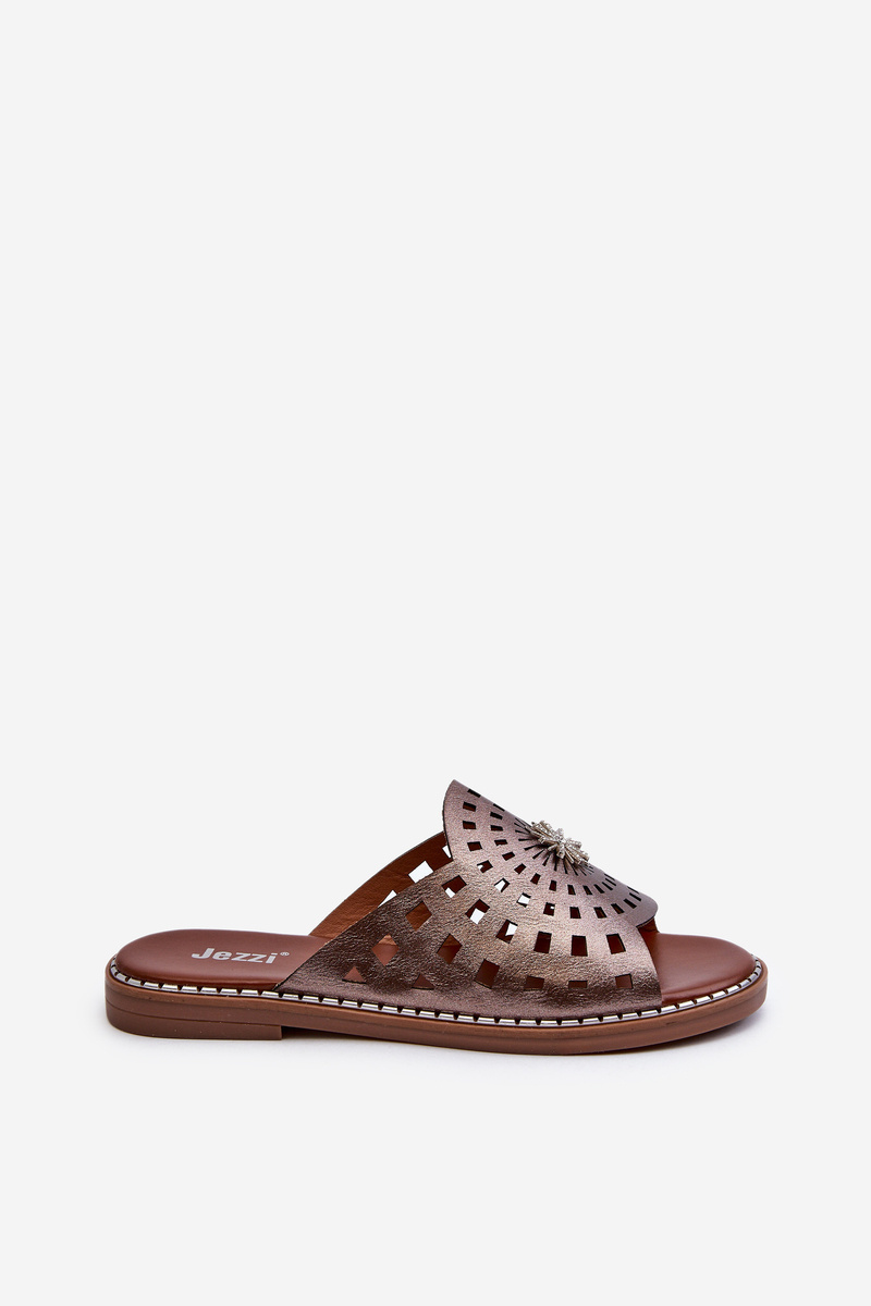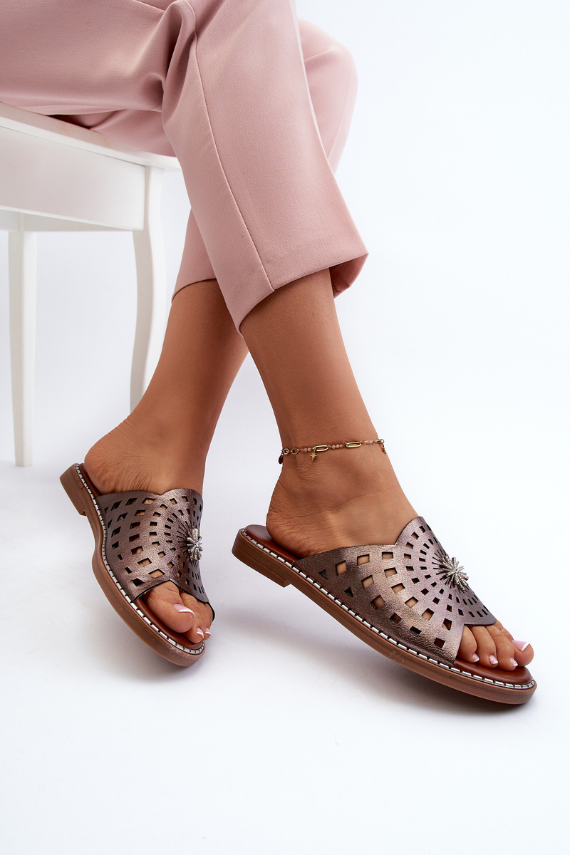 Lesklé Dámske Žabky Na Plochej Podešve S Ozdobou Meďané Ebirena