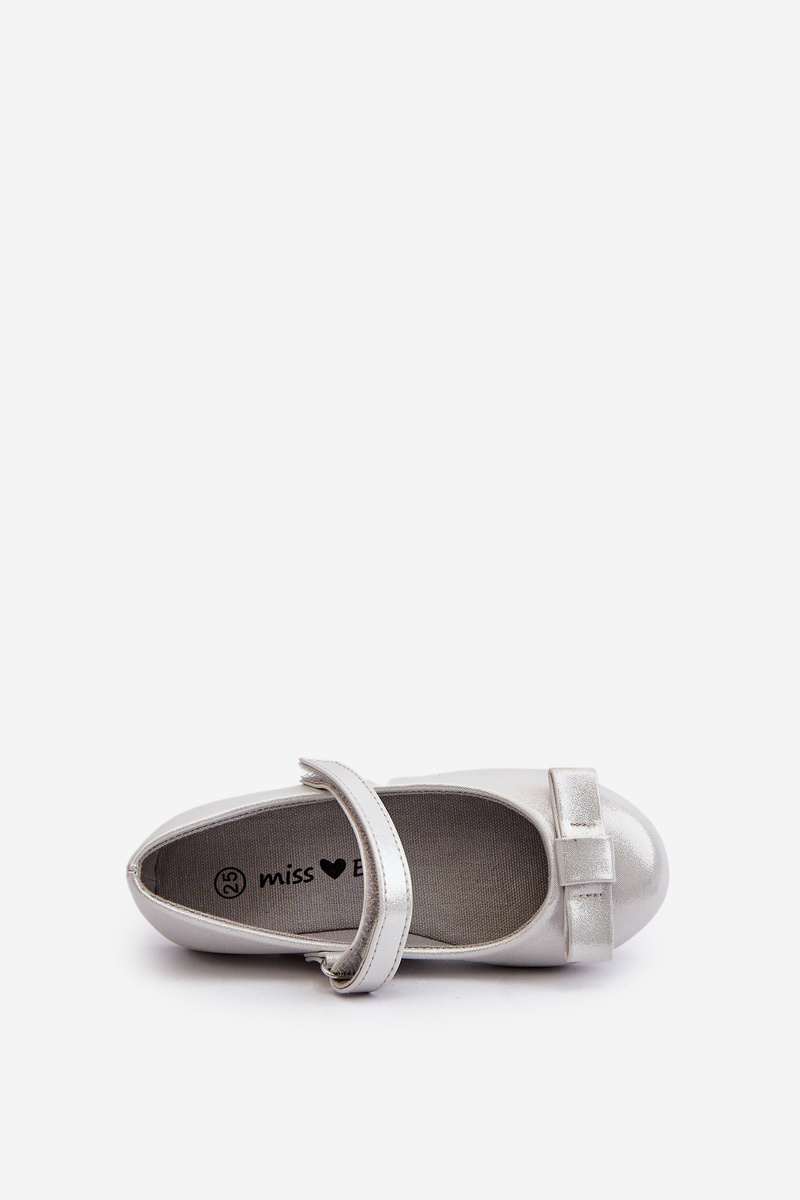 Lesklé detské baletky s mašľou na suchý zips strieborné Fiorelle