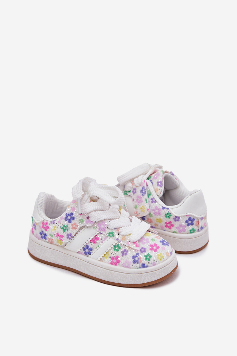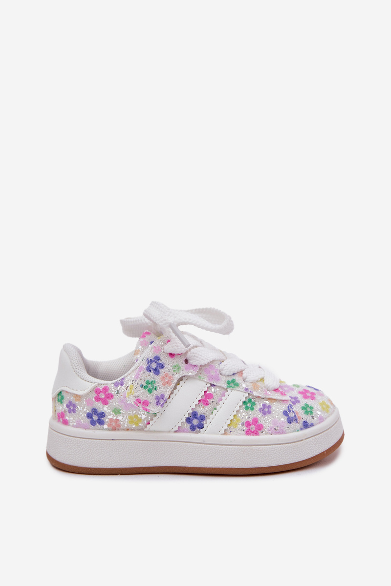 Lesklé Dievčenské Športové Topánky S Kvetmi Biele Tessina