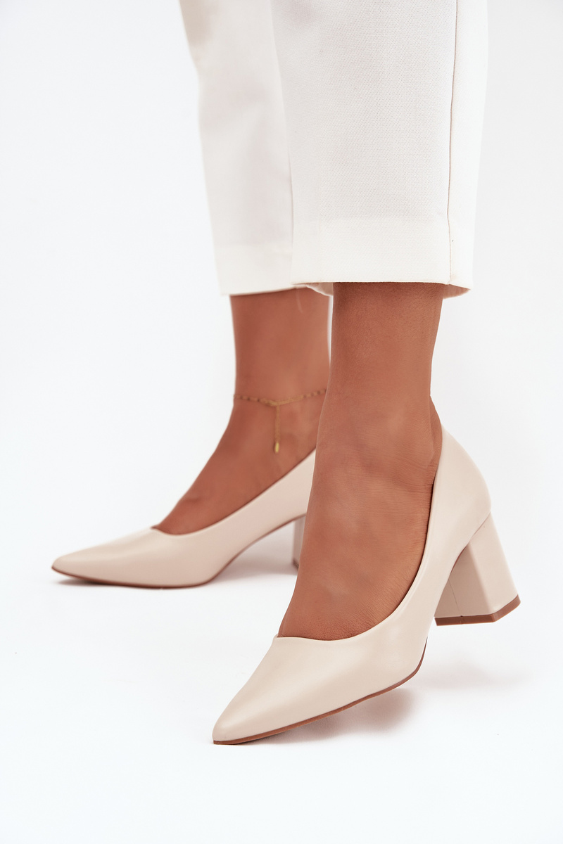 Lodičky na podpätku s ostrými špičkami svetlo béžové Ryvessa