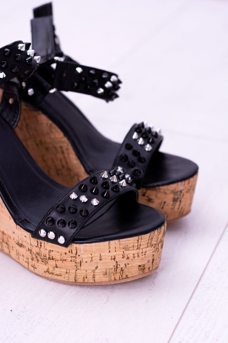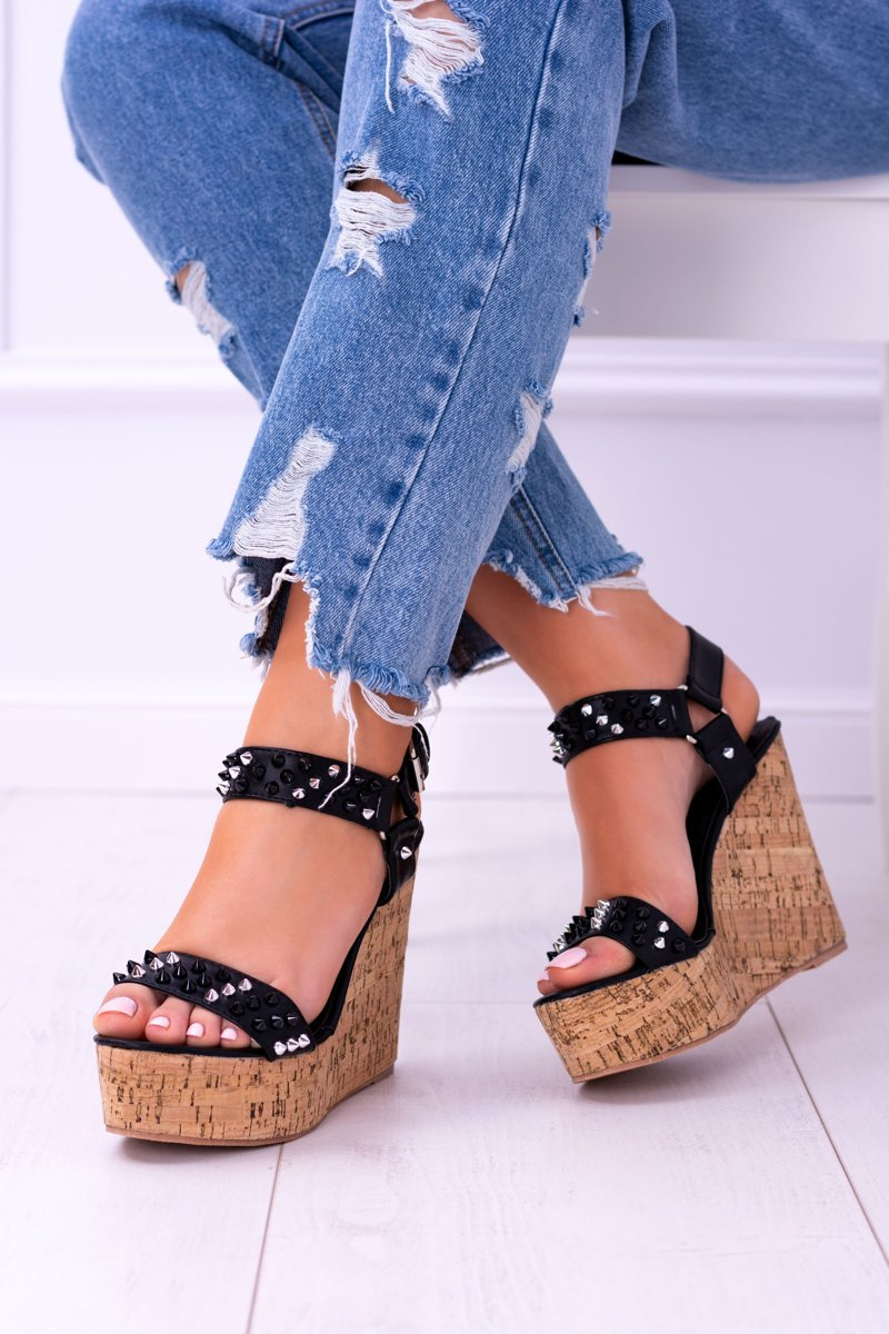 Lu Boo Black Dámske sandále na kliny poleva Valeria