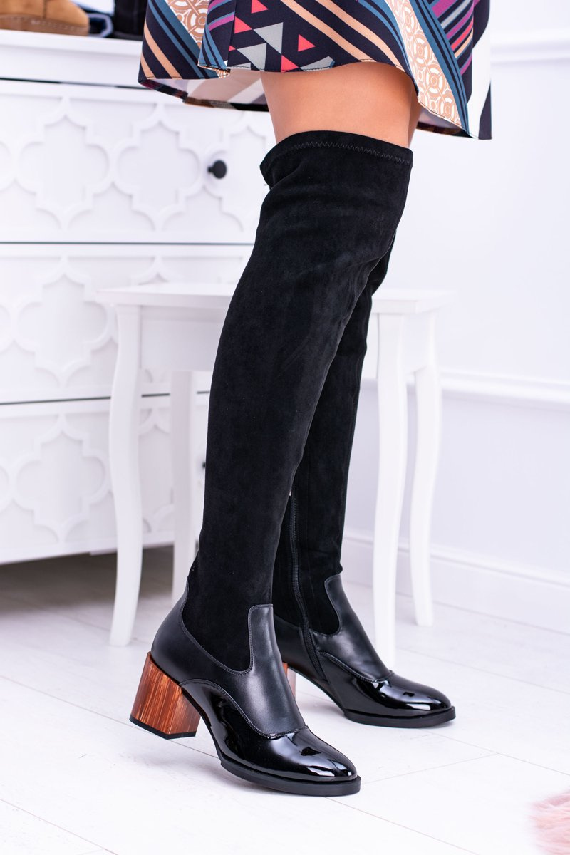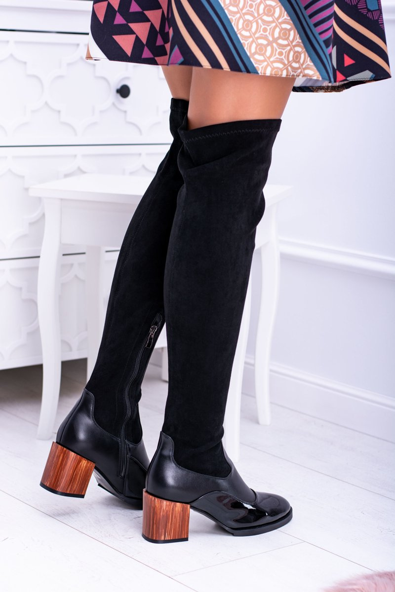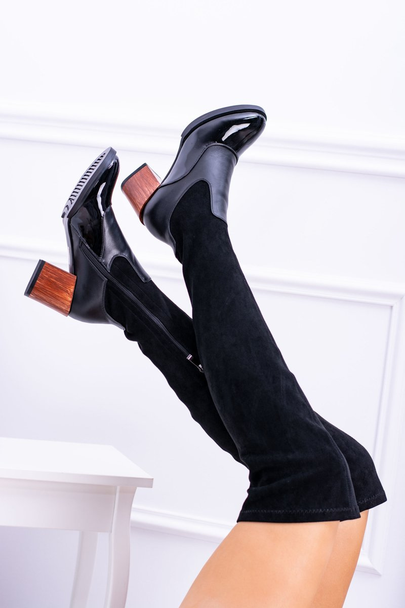 Elegantné a nadčasové topánky nad kolenom. Vyrobené z vysoko kvalitného Ekozamsza, ktorý v kombinácii s lakovaným nosom a stĺpom s textúrou dreva sa stáva neuveriteľne žiaducim modelom. Jednoduchá inštalácia vďaka hradu na boku. Vyplňte svoje úžasné štylizovanie našimi topánkami od Lu Boo a vychutnajte si ďalšiu novú topánku za úžasnú cenu!