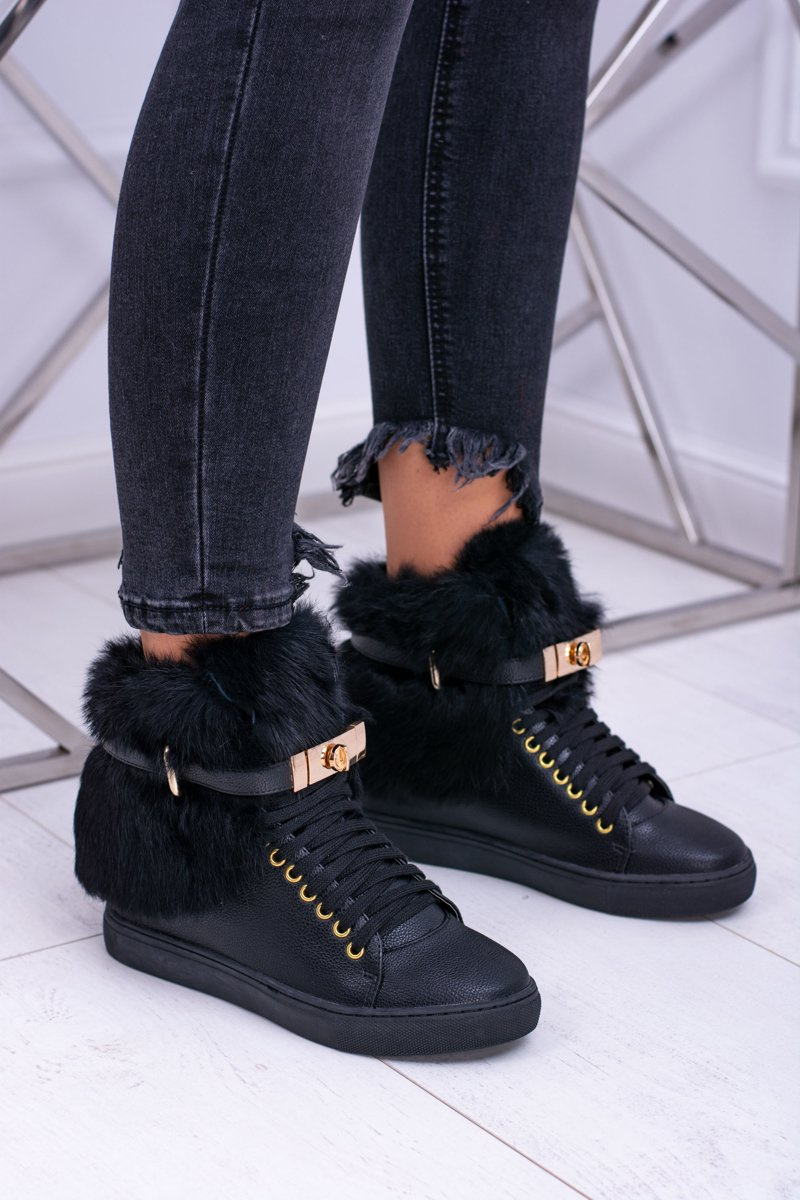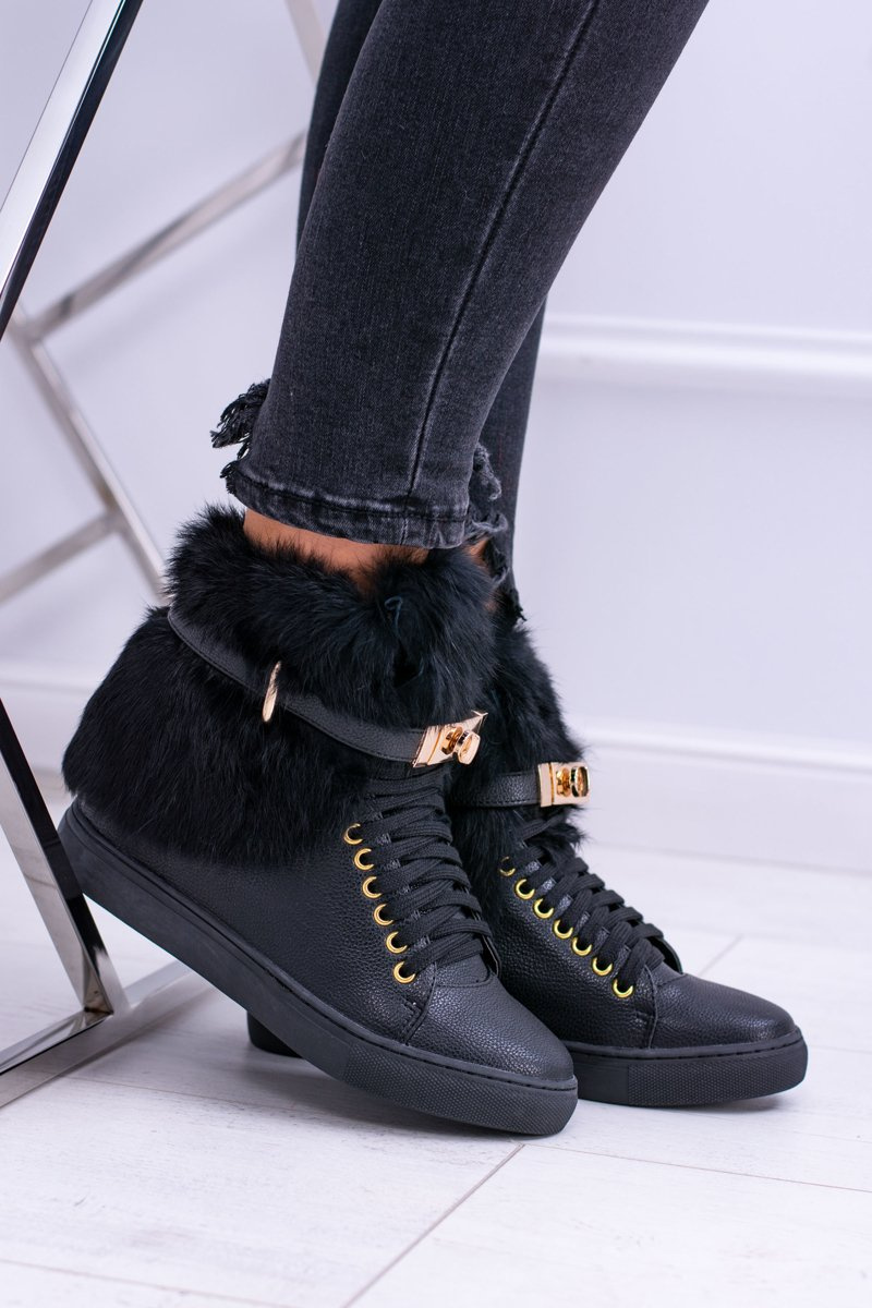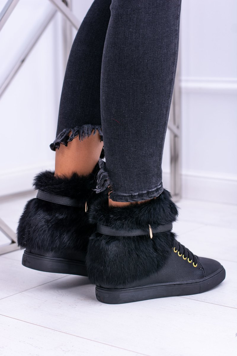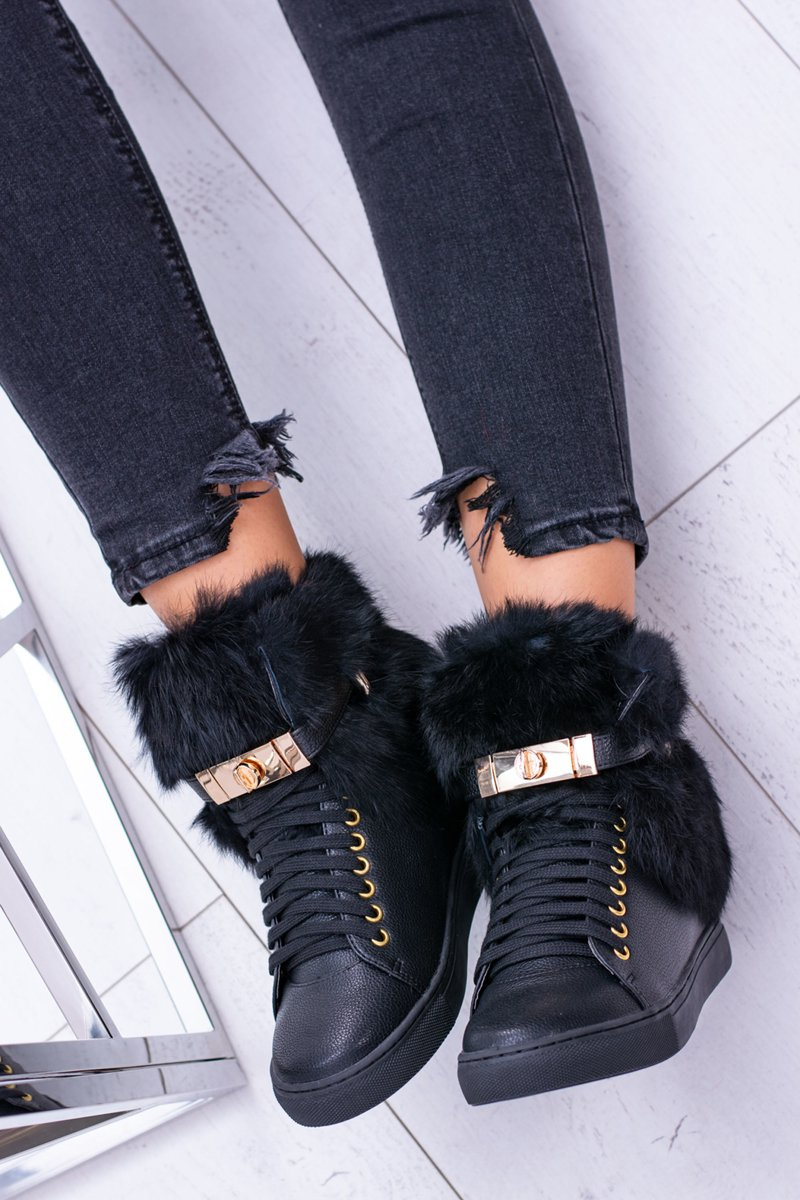 Lu Boo Black topánky s prírodnou gisele kožušinou