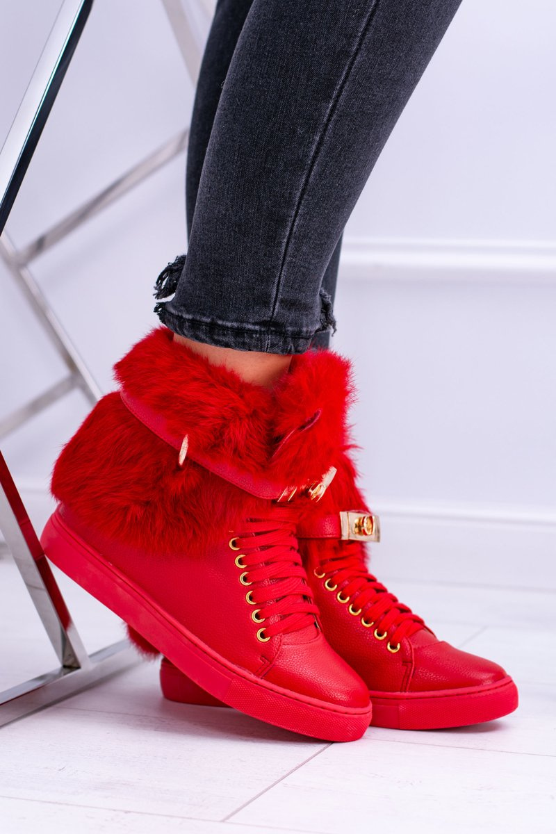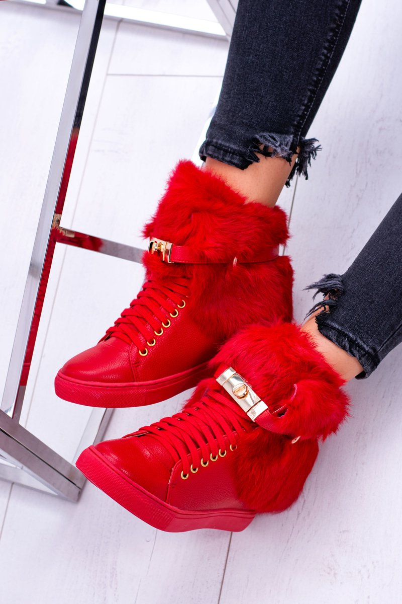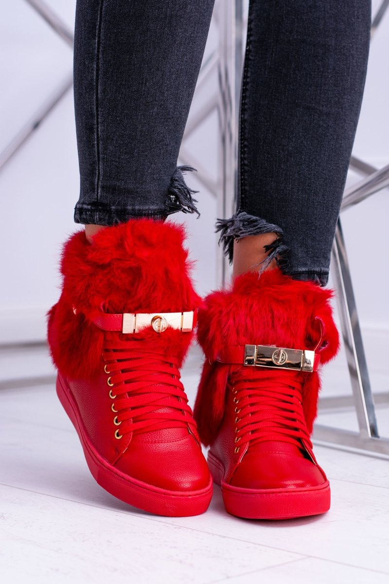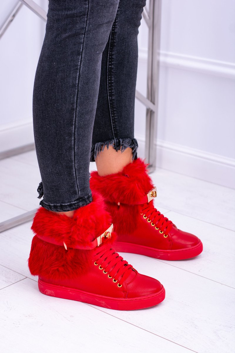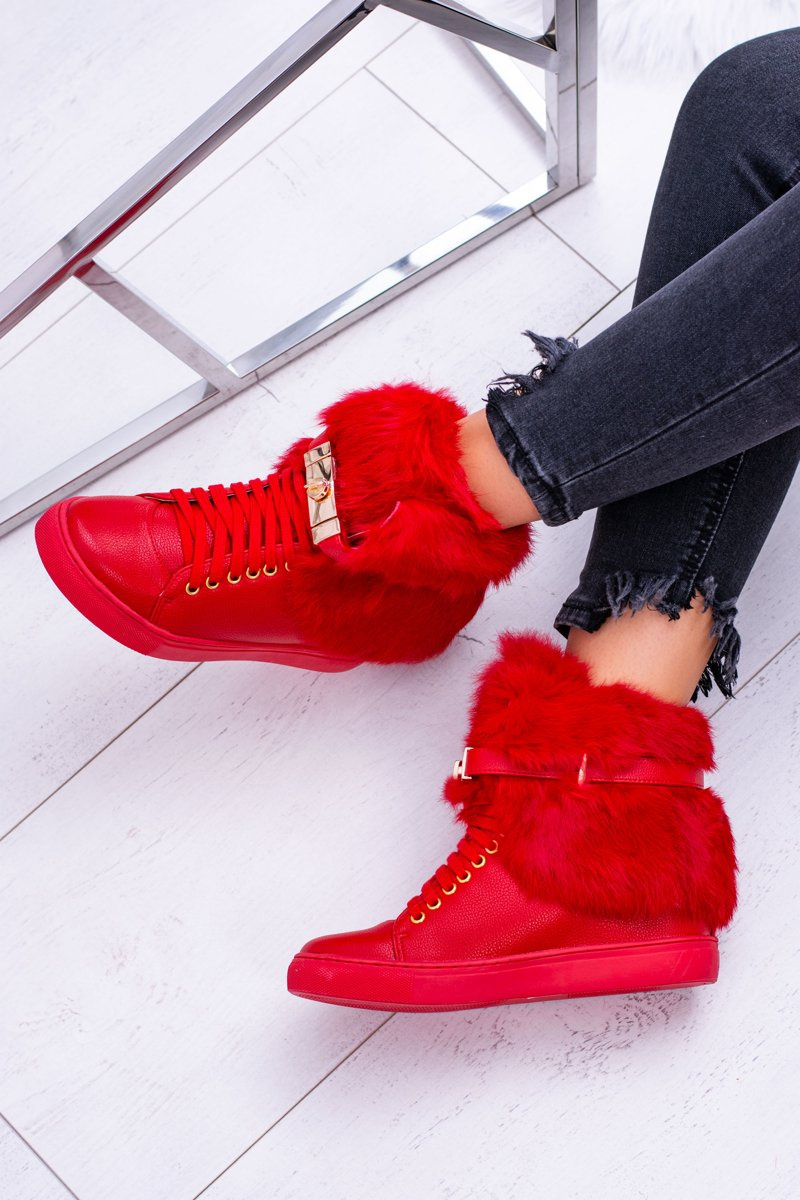 Lu boo červené topánky s prírodnou gisele kožušinou