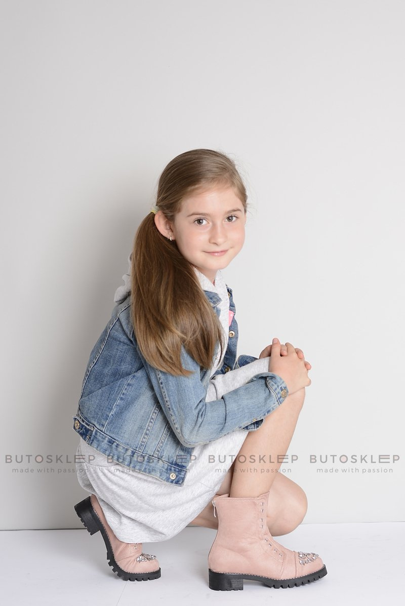 Lu Boo Detské členkové topánky s zirkónmi práškovou ružovou littlecarrie