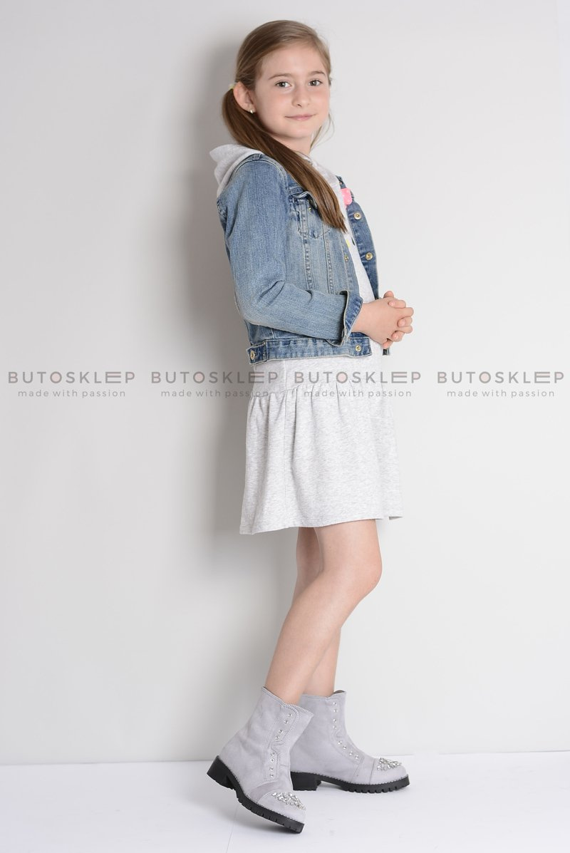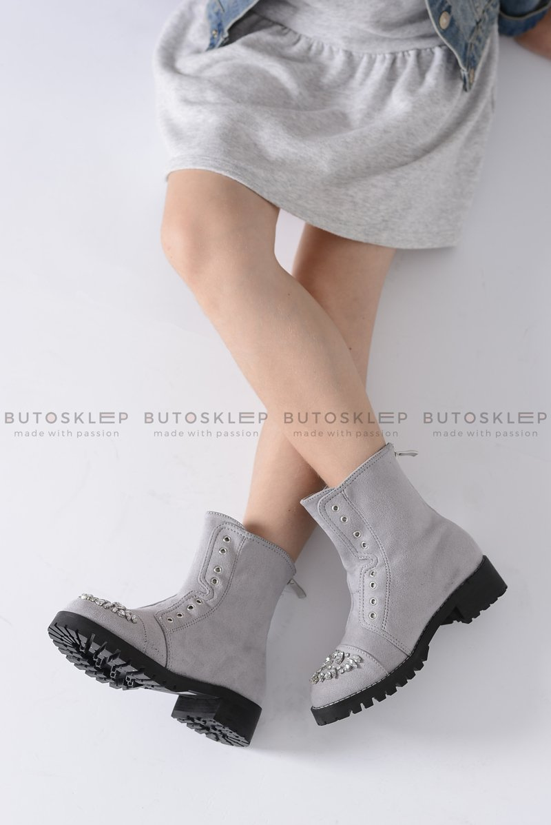Lu Boo Gray Detské členkové topánky s zirkónmi Littlecarrie