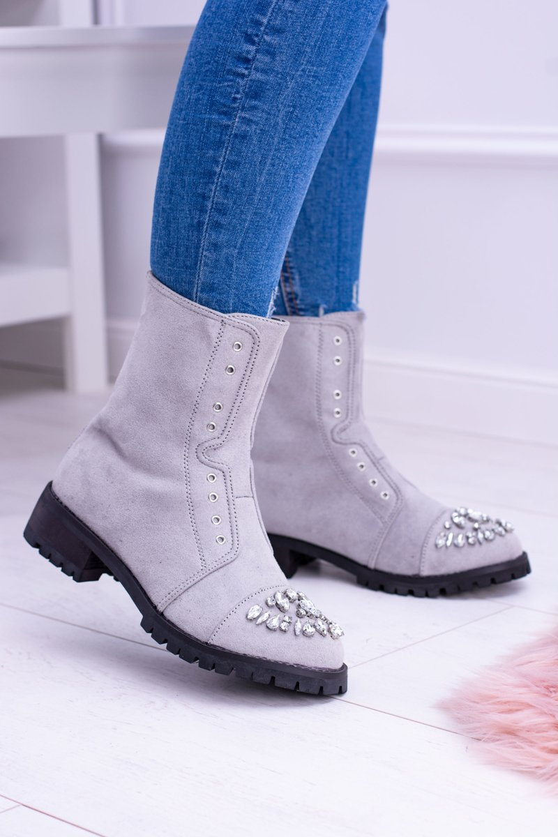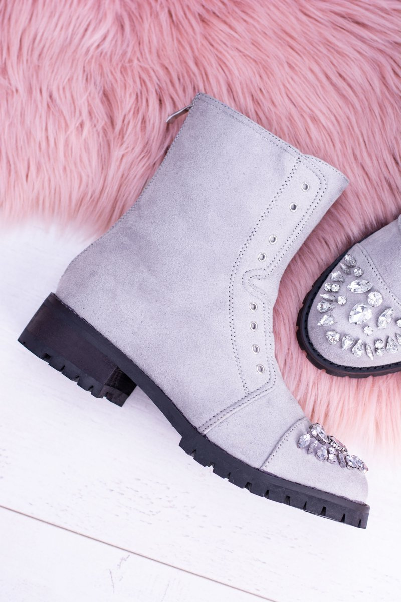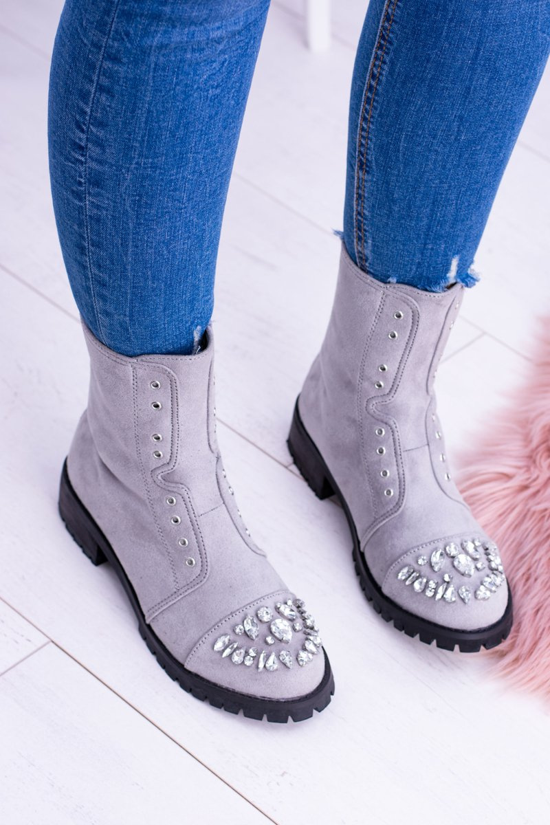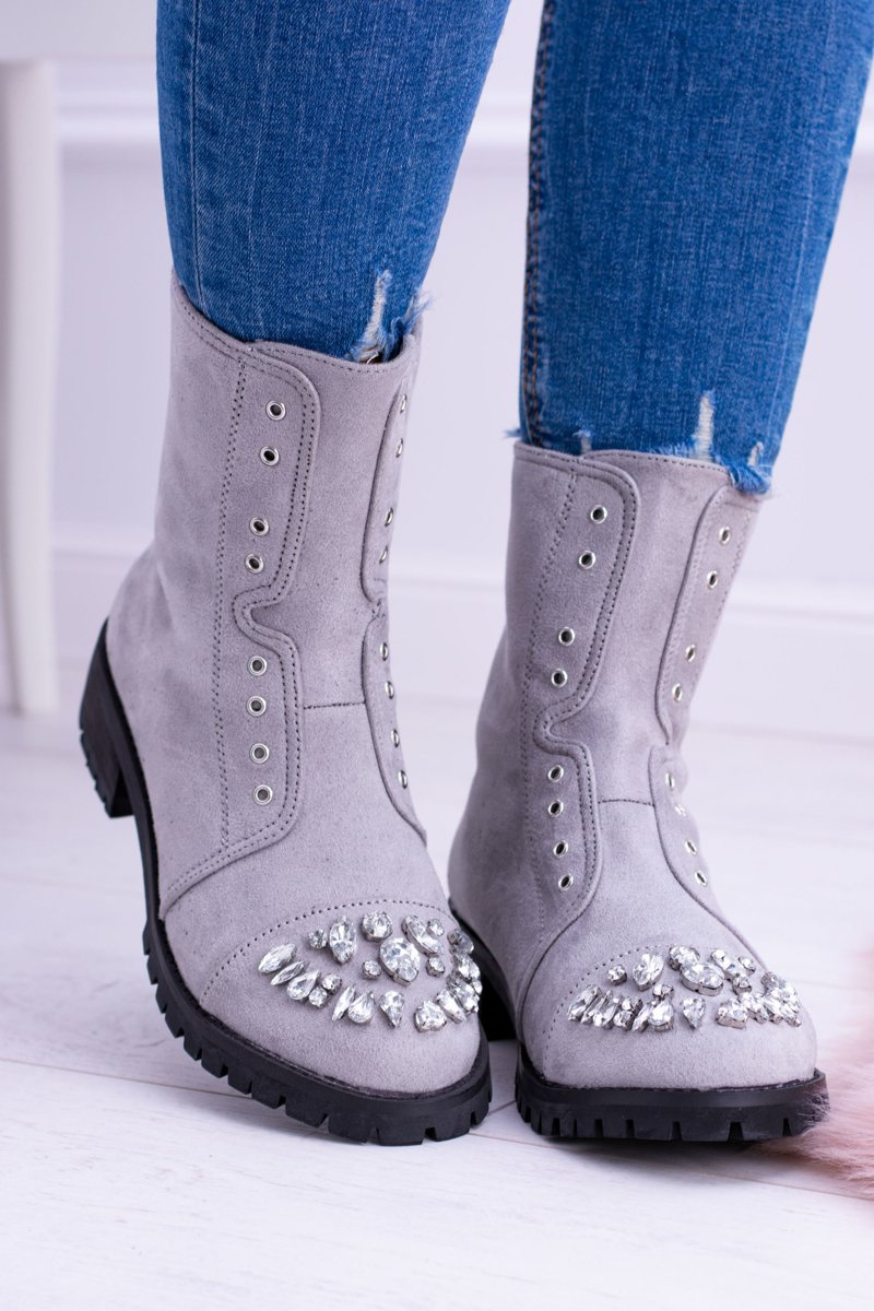 Lu Boo Šedá dámska členkové topánky s Carrie zirkónmi