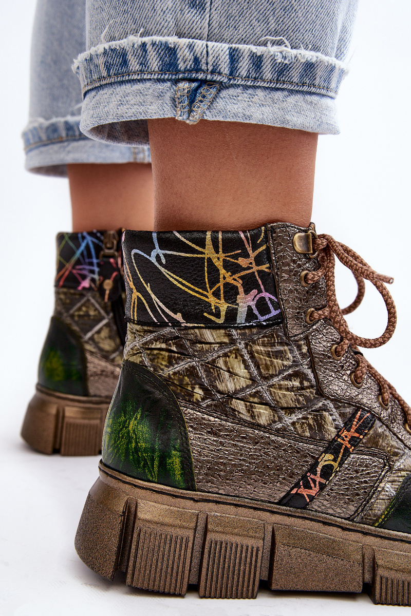 Dámske topánky vyrobené z vysoko kvalitnej prírodnej kože. Zvukok členka s módnym vzorom. Šnurovanie na prednej strane. Zaoblené prsty na nohách. Stuhnutá päta. Tento model je pripevnený posúvačom. Mäkká vložka zabezpečí pohodlné použitie obuvi. Nezabudnite skontrolovať naše ďalšie modely Maciejka! Pri výbere veľkosti navrhnite tabuľku veľkosti.