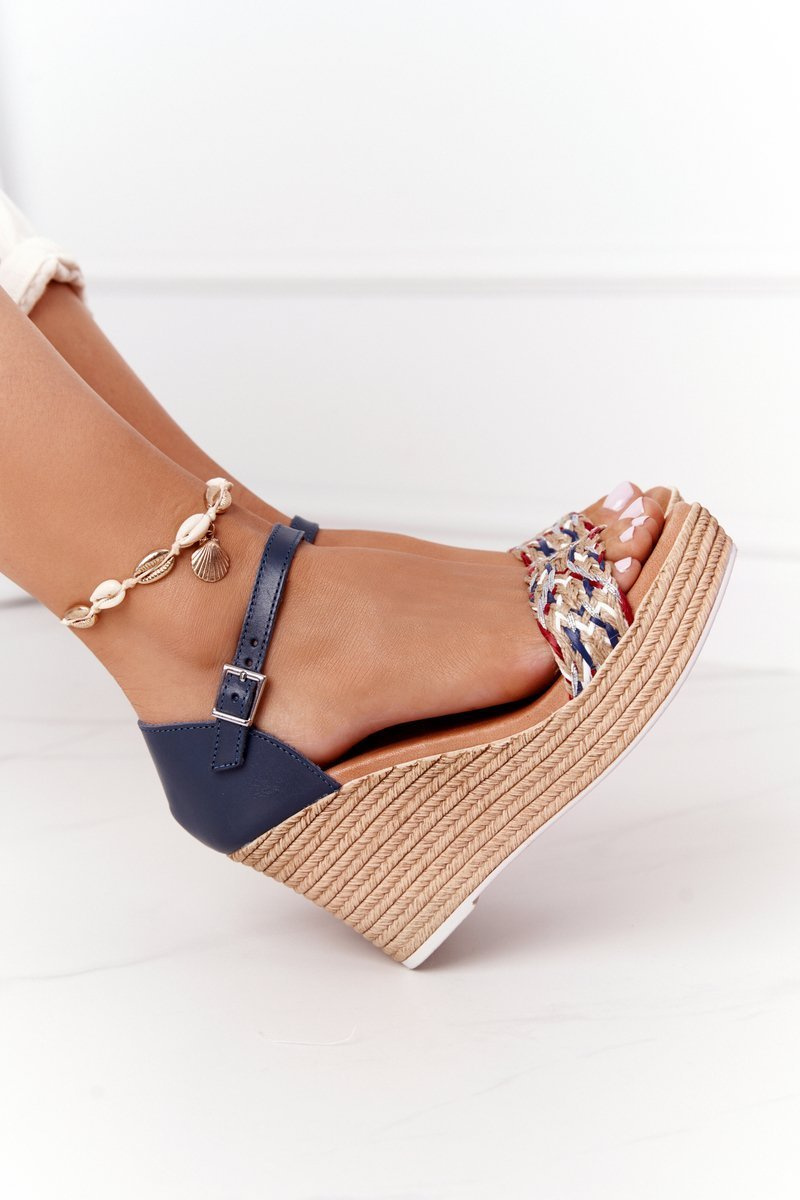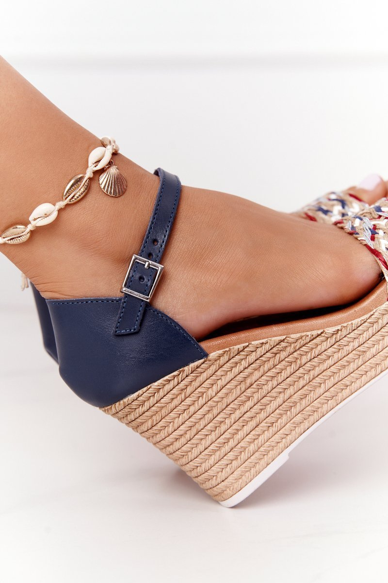 Krásne klinové sandále z poľskej značky Maciejka. Topánky boli vyrobené z vysoko kvalitnej prírodnej kože. Krásne zdobený klin bude diverzifikovať váš šatník! Vložka z mäkkej kože je zárukou pohodlia! Pri výbere veľkosti navrhnite tabuľku veľkosti.