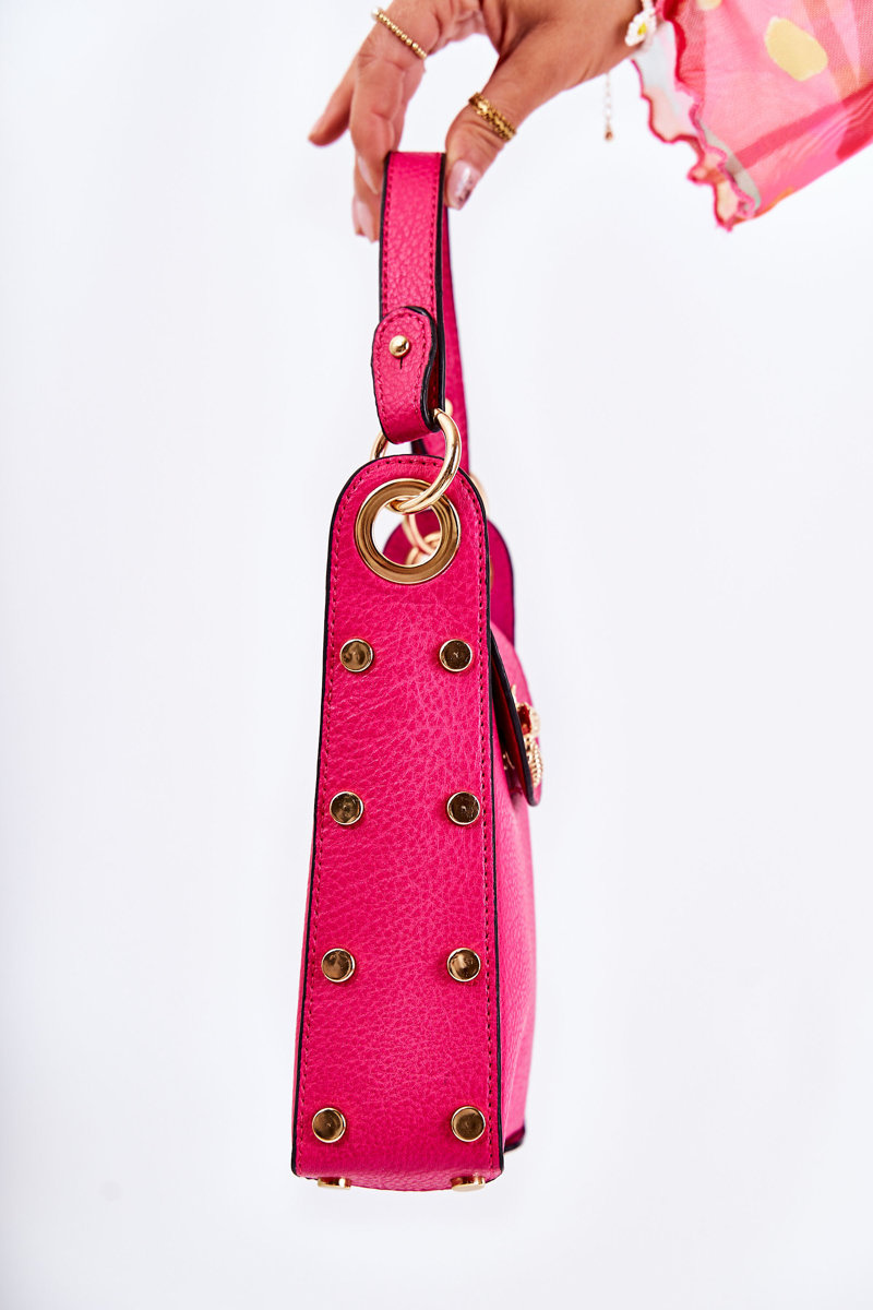 Malá dámska taška vyrobená z ekologickej kože. Má neodolateľnú, neregulovanú rukoväť. Komora sa uzavrela západkou so západkou. Vpredu je dekoratívny znak vo forme hmyzu. Dekoratívne cvočky boli umiestnené na bokoch vrecka. Okrem toho je k vaku pripevnený nastaviteľný, odnímateľný remienok s reťazou. Táto kabelka je hitom sezóny, takže už nečakajte a kúpte ju ešte dnes! Skontrolujte tiež ďalšie modely tašiek, ktoré sú k dispozícii v našej ponuke!
