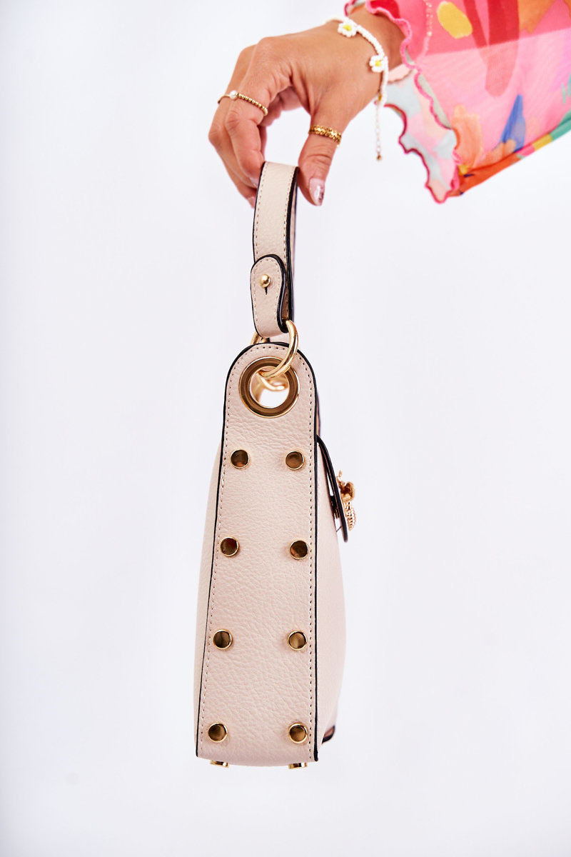 Malá dámska taška vyrobená z ekologickej kože. Má neodolateľnú, neregulovanú rukoväť. Komora sa uzavrela západkou so západkou. Vpredu je dekoratívny znak vo forme hmyzu. Dekoratívne cvočky boli umiestnené na bokoch vrecka. Okrem toho je k vaku pripevnený nastaviteľný, odnímateľný remienok s reťazou. Táto kabelka je hitom sezóny, takže už nečakajte a kúpte ju ešte dnes! Skontrolujte tiež ďalšie modely tašiek, ktoré sú k dispozícii v našej ponuke!