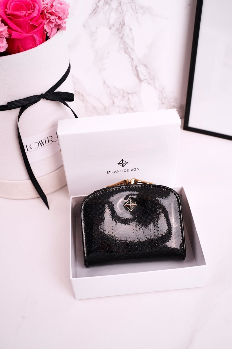 Malá dámska peňaženka pripevnená biggielom. Portfólio sa ubytuje mince, bankovky a platobné karty. Vyrobené z ekologickej kože.