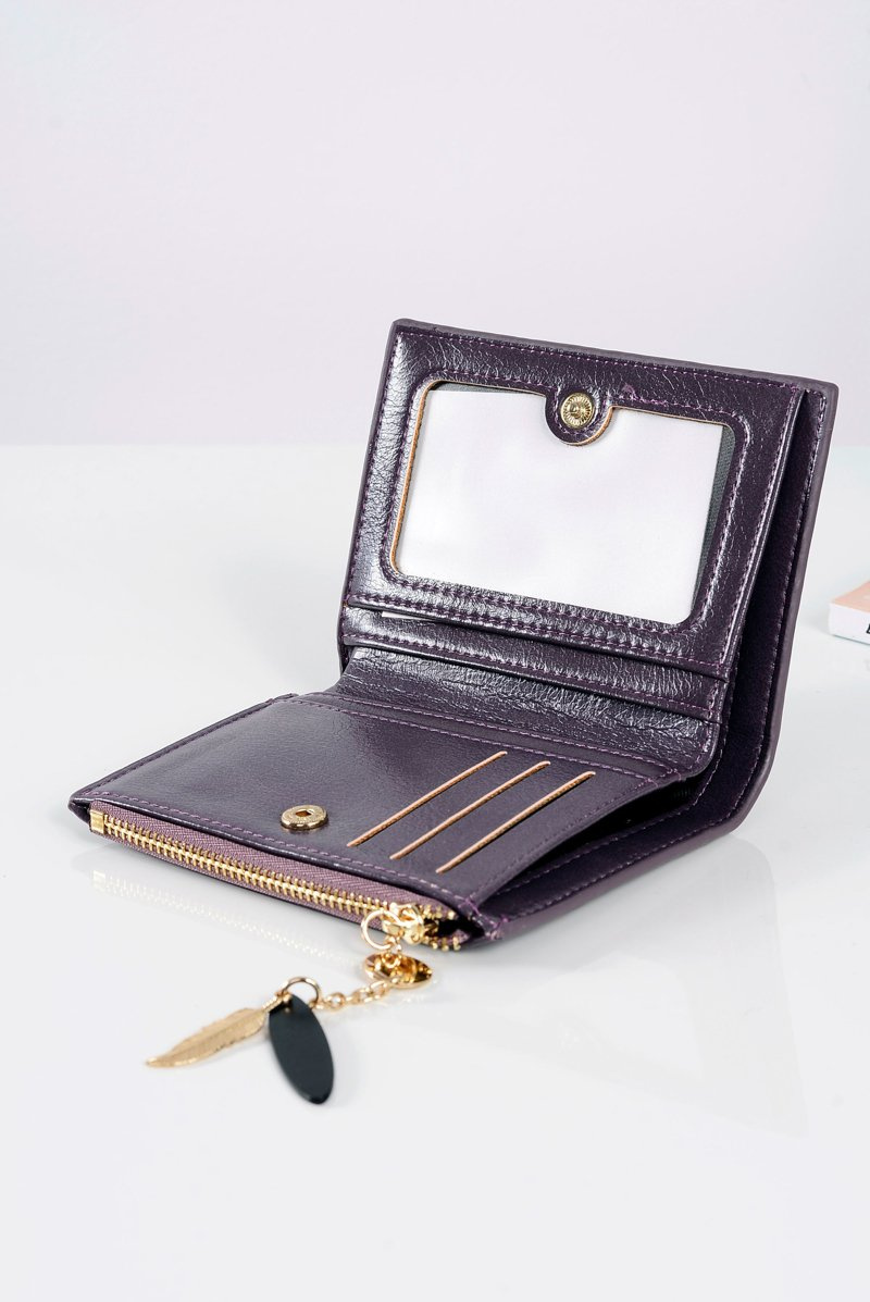 Malé dámske slivkové peňaženka zlaté perie