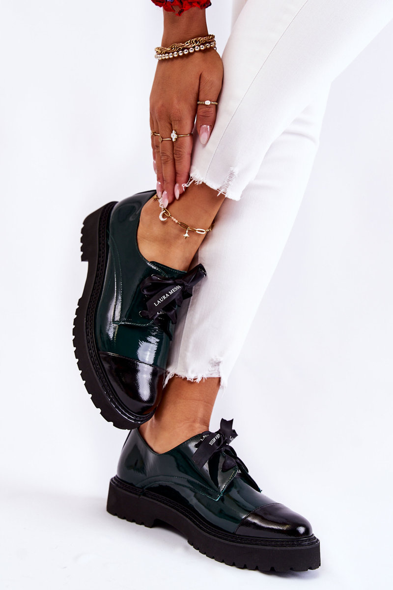 Skóra naturalna - labeltak Towar wprowadzony przed 13.12.2024Tak Maľovaná Laura Messi 2441 Zelené zviazané topánky