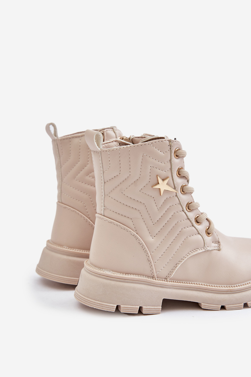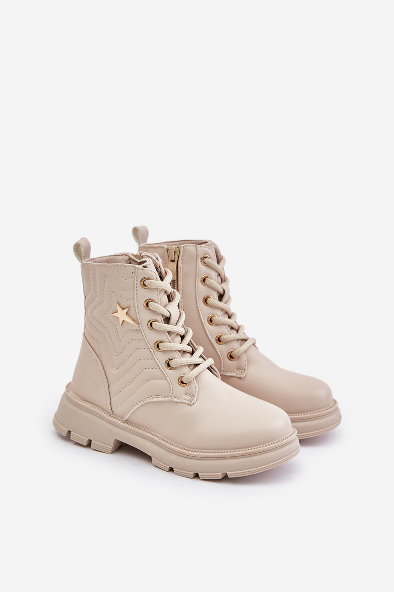 Otroški gležnarji iz ekološke usnjene, nameščeni na gumijastem podplatu. Notranjost je oblazinjena z obutveno odejo za dodatno toploto. Čevlji so vezani in zadrgo, kar jih naredi idealne za hladnejše dni. Šnure so okrašene. Ti gležnarji bodo vašemu otroku naredili izjemen videz! Ne oklevajte, kupite jih še danes! Pri izbiri velikosti si oglejte tabelo velikosti.