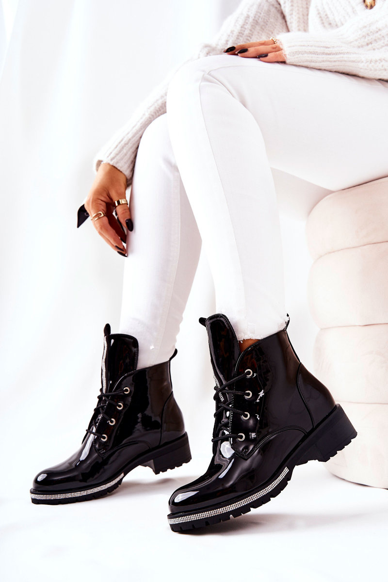 Elegantné topánky vyrobené z lakovanej ekologickej kože. Interiér je pokrytý teplou a príjemnou obuvou prikrývkou - zárukou pohodlia v každej situácii. Na jazyku a podrážke sú dekoratívne kamienky. Topánky sú zviazané. Nezabudnite sa pozrieť na celú našu ponuku topánok! Pri výbere veľkosti navrhnite tabuľku veľkosti.