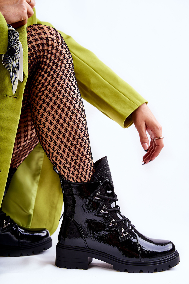 Dámske topánky sú ideálnou voľbou pre dočasnú sezónu. Tieto topánky boli vyrobené z lakovanej ekologickej kože. Majú trysky na šnúrkách a na jazyku. Okrem toho je päta stuhnutá. Tento model má izoláciu vo forme prikrývky obuvi. Ploché topánky a platforma s drážkami. Tento model by mal byť váš! Pri výbere veľkosti navrhnite tabuľku veľkosti. -27 cm