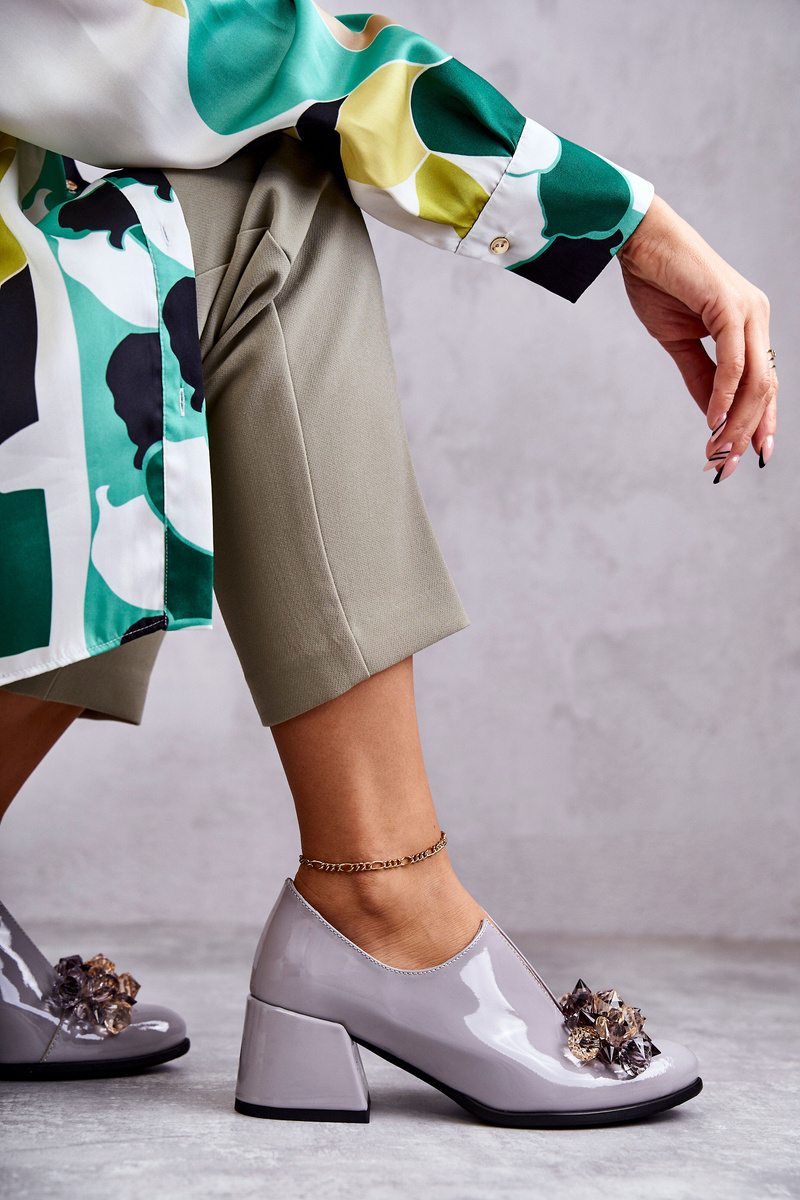 Elegantné topánky s nízkym obsahom ukotvenia vo forme širokého stĺpu. Boli vyrobené z prírodnej kože. Majú mäkkú vložku. Dekorácia šitá na prednej strane a rez ich robí skutočne jedinečnými. Topánky majú nos s mandľom. Nezabudnite skontrolovať ďalšie modely polovičných, k dispozícii v našej ponuke! Pri výbere veľkosti navrhnite tabuľku veľkosti.