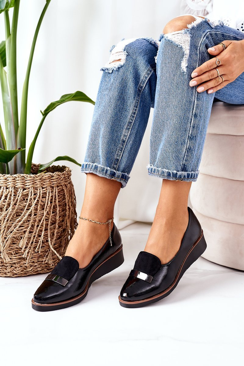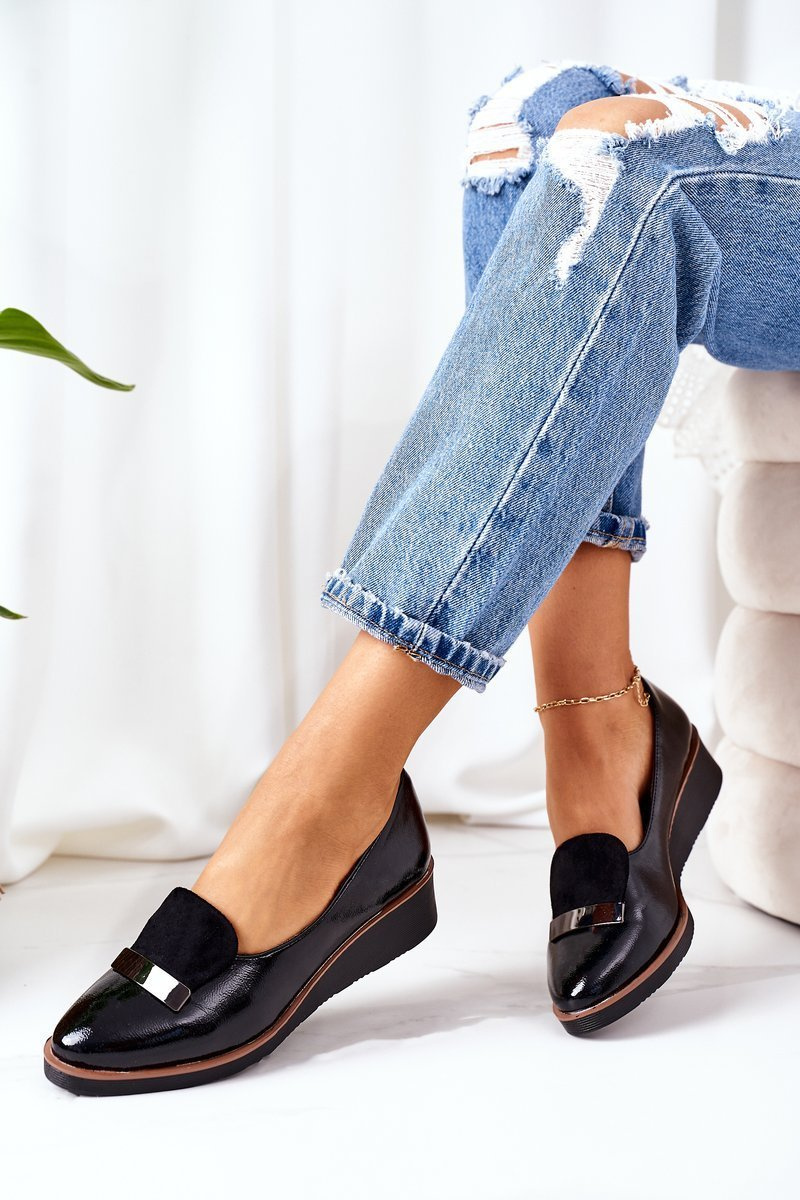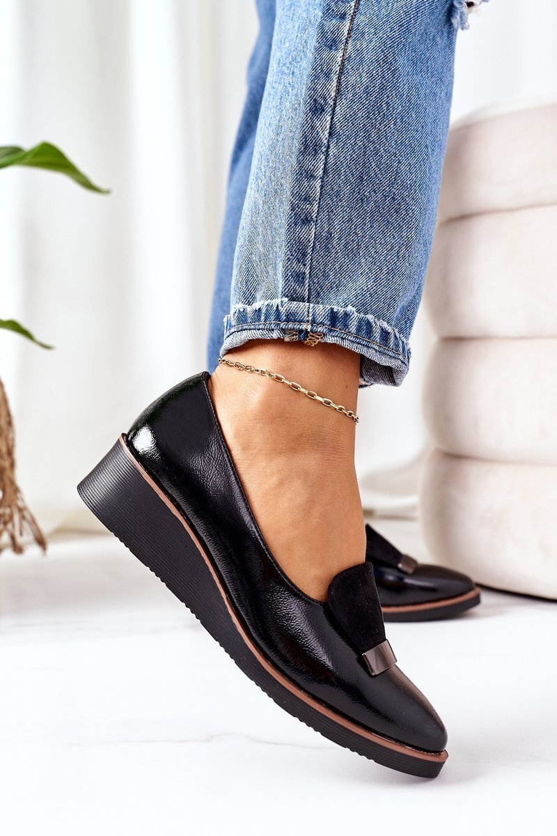 Elegantné kliny potocki. Topánky sú vyrobené z lakovanej ekologickej kože s ohľadom na každý detail. Prírodná kožená vložka sa postará o vaše pohodlie. Pri výbere veľkosti navrhnite tabuľku veľkosti.