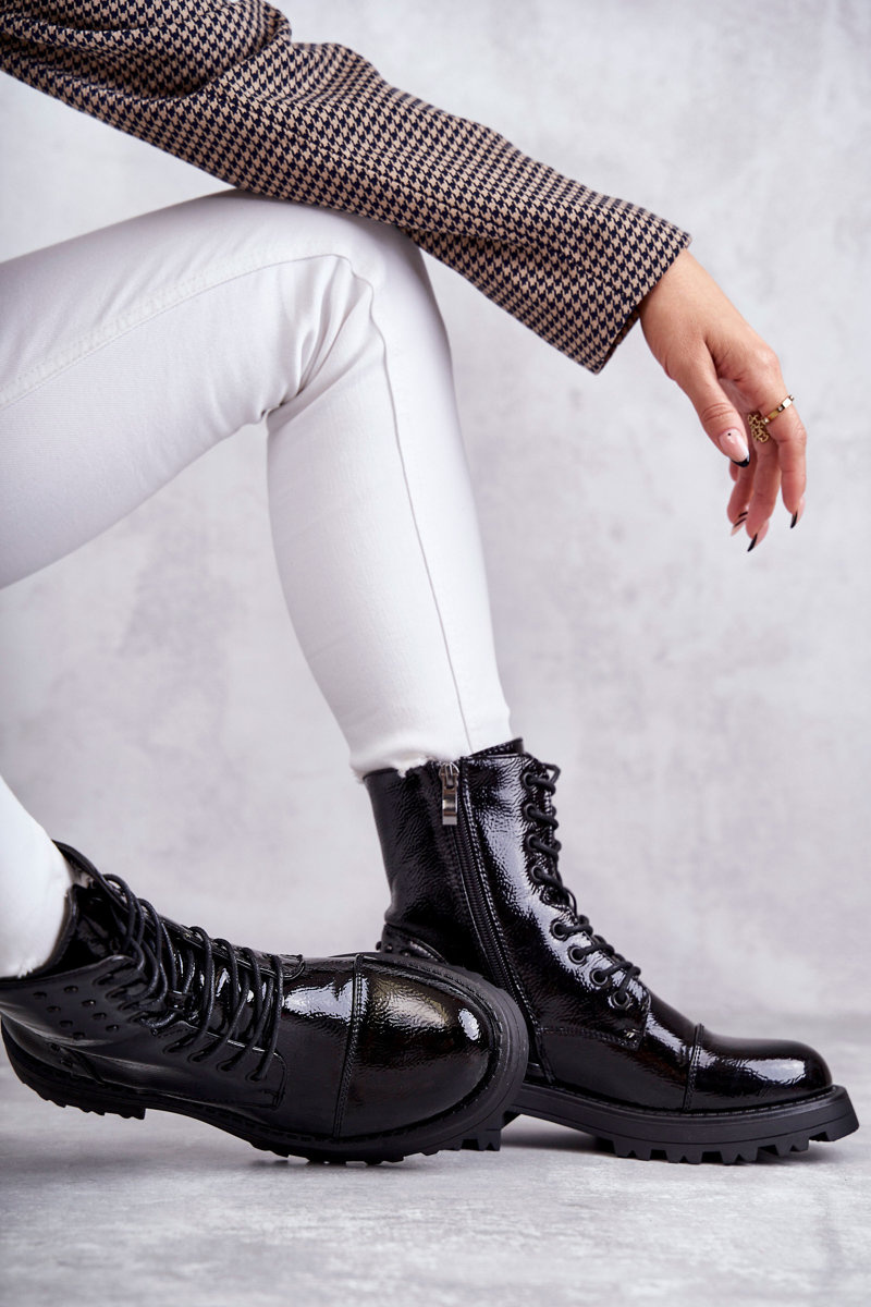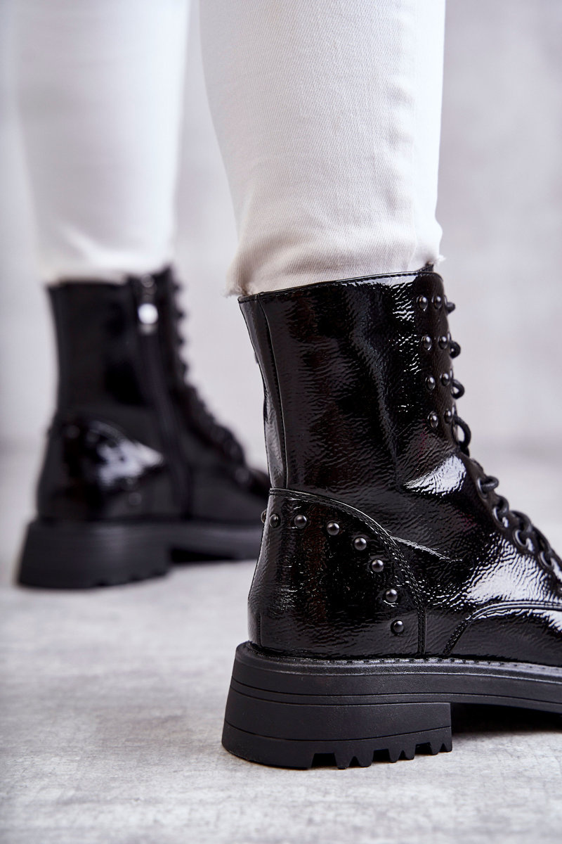 Perfektné topánky pre chladné jesenné dni. Majú šitie má predné a dekoratívne cvočky na zvršku. Pripevnené zo strany na zips a priviazané. Okrem toho je päta stuhnutá. Čižmy boli umiestnené na plochú pätu s behúňom. Centrum bolo izolované prikrývkou obuvi. Pohodlné a pohodlné na použitie - mali by ste ich mať v šatníku! Pri výbere veľkosti navrhnite tabuľku veľkosti.