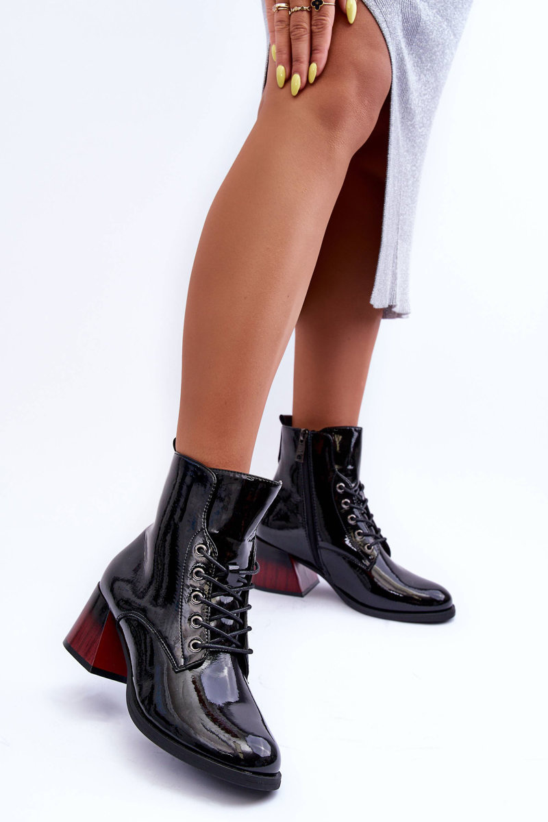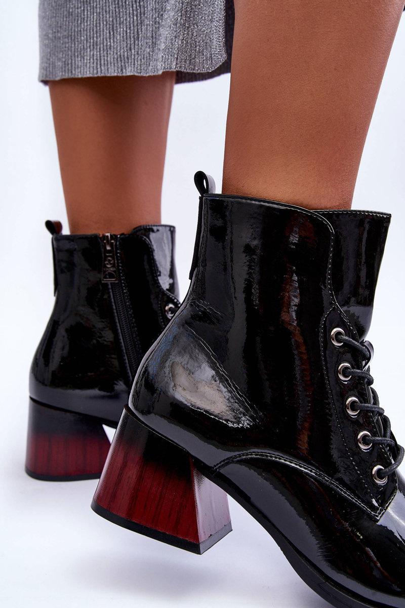 Maľované dámske topánky s horným členkom. Nastavené na platforme a pätách. Vyrobené z ekologickej kože. Majú upevnenie na zips a ďalšie šnurovanie. Mäkká vložka zabezpečí pohodlné použitie obuvi. Päta v tejto obuvi je stuhnutá. Boots bude skvelým doplnkom mnohých štýlov! Pri výbere veľkosti navrhnite tabuľku veľkosti.