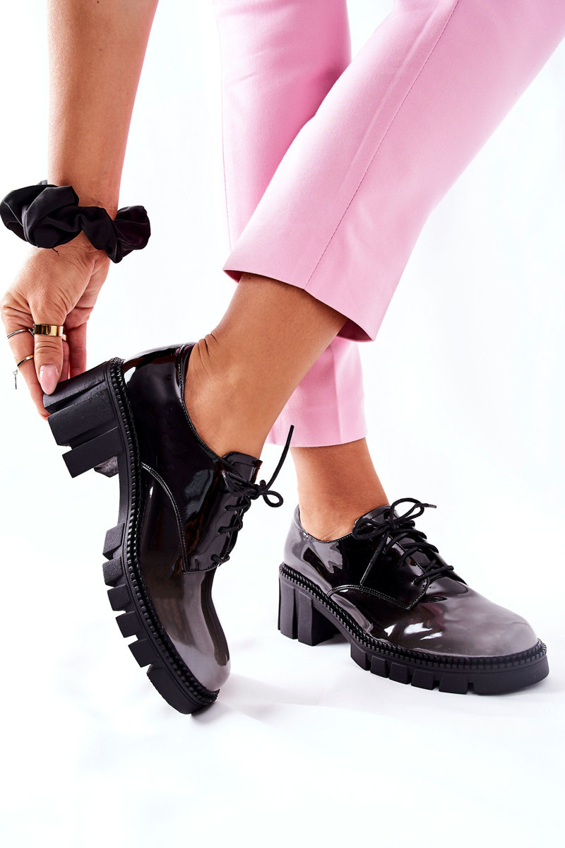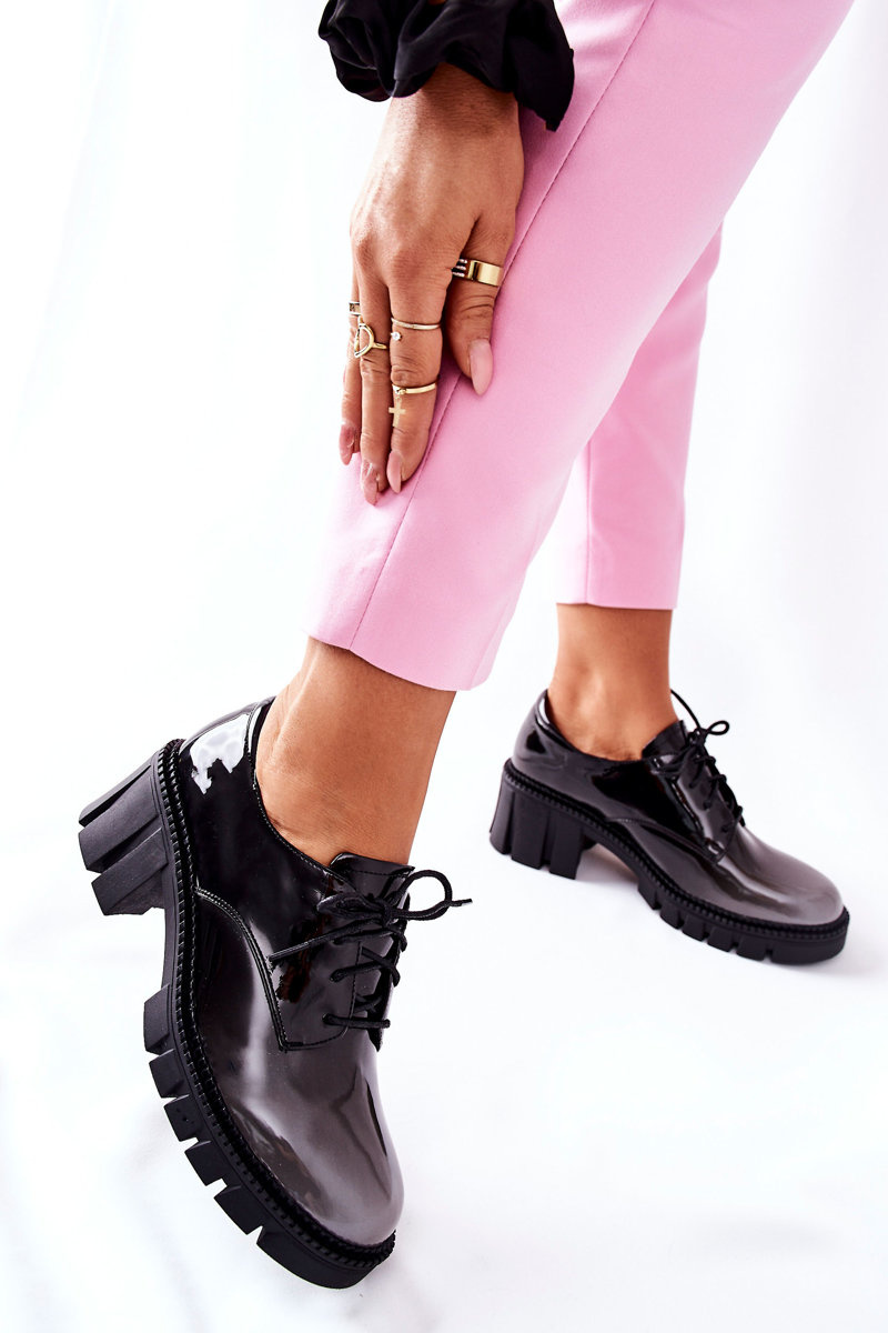 Topánky sú vyrobené z vysoko kvalitnej lakovanej ekologickej kože. Mäkká vložka vyrobená z prírodnej kože je zárukou pohodlia. Topánky sa vyznačujú gumovou plastovou podrážkou. Väzba znamená, že ich môžete prispôsobiť svojim vlastným požiadavkám. Nízka, masívna päta poskytuje pohodlie. Pri výbere veľkosti navrhnite tabuľku veľkosti.