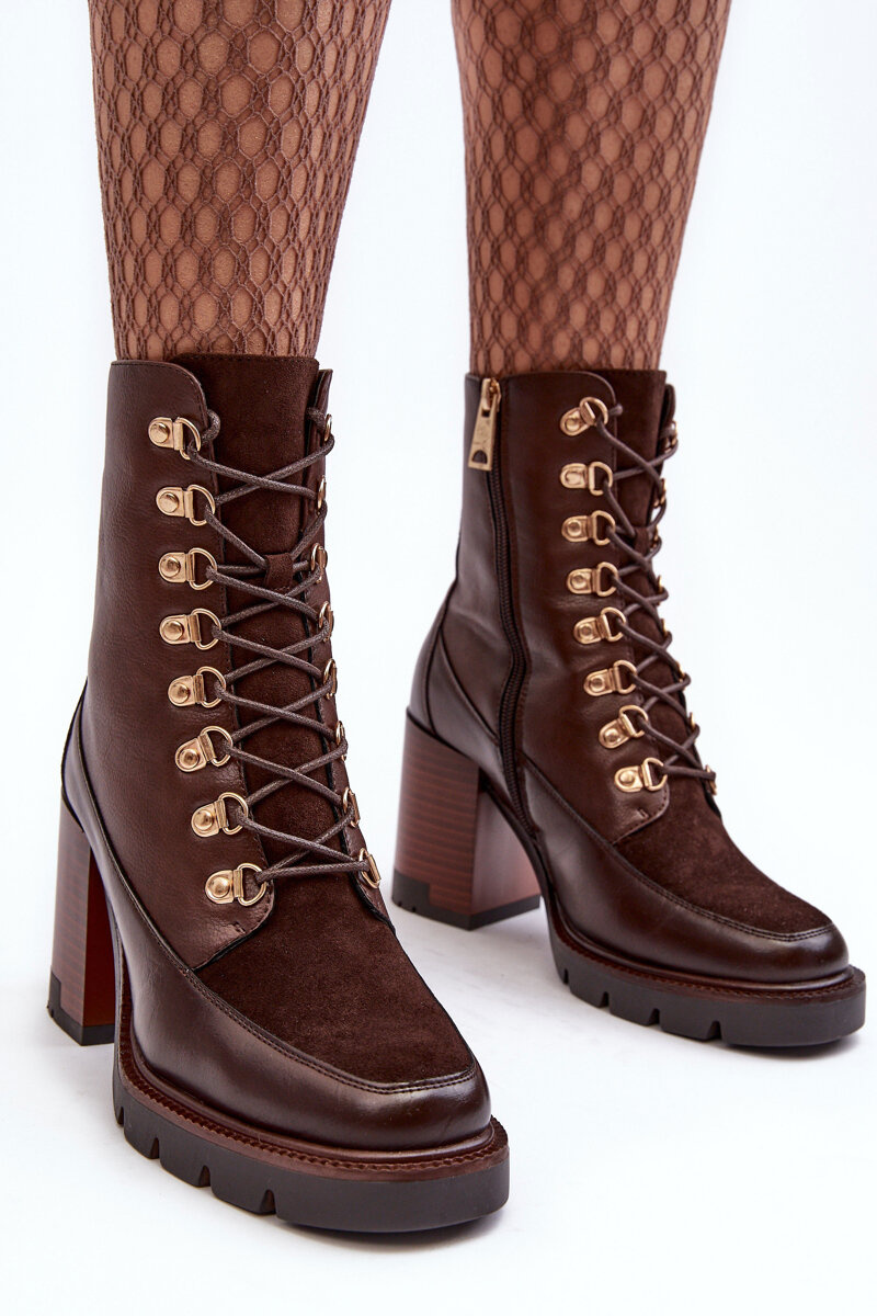 topánky na masívnej päte a platforme. Vyrobené z ekologickej kože a ekologickej semišovej kombinácie. Pripevnený posúvačom na boku. Okrem toho hovoria šnurovanie. Agent izoloval prikrývku topánky. Zaoblené prsty na nohách. Stuhnutá päta. Pri výbere veľkosti navrhnite tabuľku veľkosti.