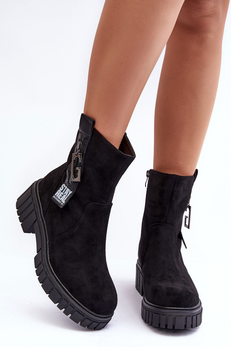 Štýlové ženské topánky zabudované na masívne ploché päty a platformu. Tento model je vyrobený z ekologického semišu. Pripevnený zipsom na vnútornej strane hornej časti. Interiér izolovaný prikrývkou obuvi. Zaoblené prsty na nohách. Skvelý model pre mnoho štytlizácií na jeseň zimné! Pri výbere veľkosti navrhnite tabuľku veľkosti. /p>
