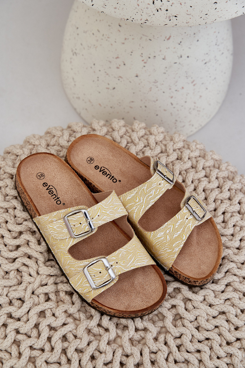 Materiálové šľapky na korkovej podrážke s prackami žlté Atera
