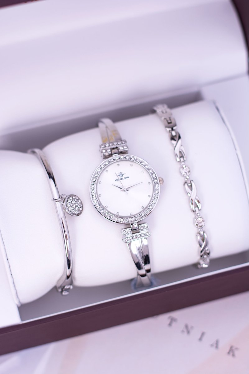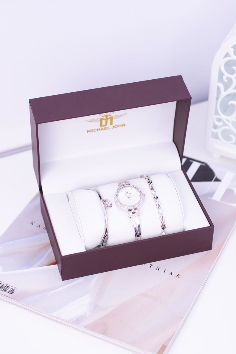 Michael John stanovil ženské strieborné hodinky so zirkónmi dvoma náramkami