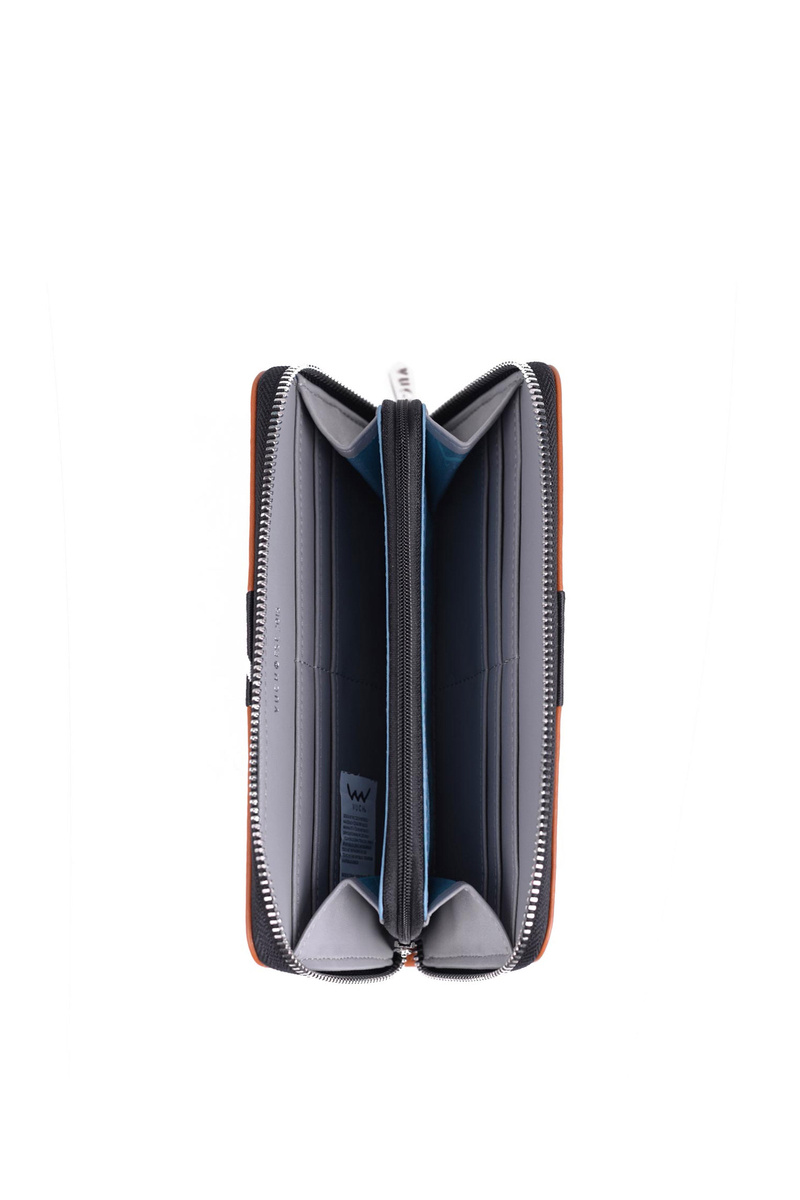 Krásna peňaženka vyrobená z ekologickej kože s pridaním šitého materiálového pásu s logom. Pripevnený zipsom. Vo vnútri má menšie otvorené vrecká pre vizitky alebo kreditné karty a miesto pre bankovky. Vo vnútri je tiež vrecko zatvorené s posúvačom. Jedinečný model, ktorý poteší veľa ľudí, by mal byť váš! Neváhajte a kupujte ešte dnes!