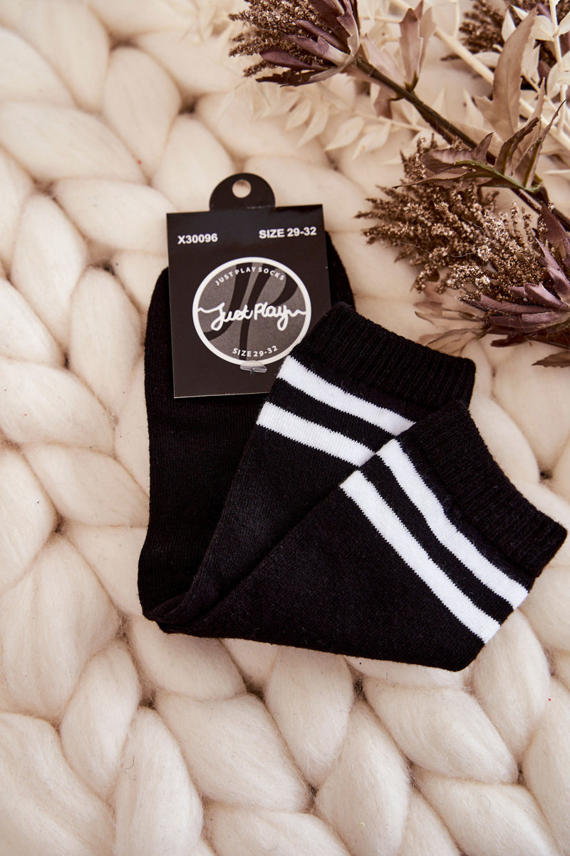 Mládežnícke bavlnené športové ponožky s čiernymi pruhmi