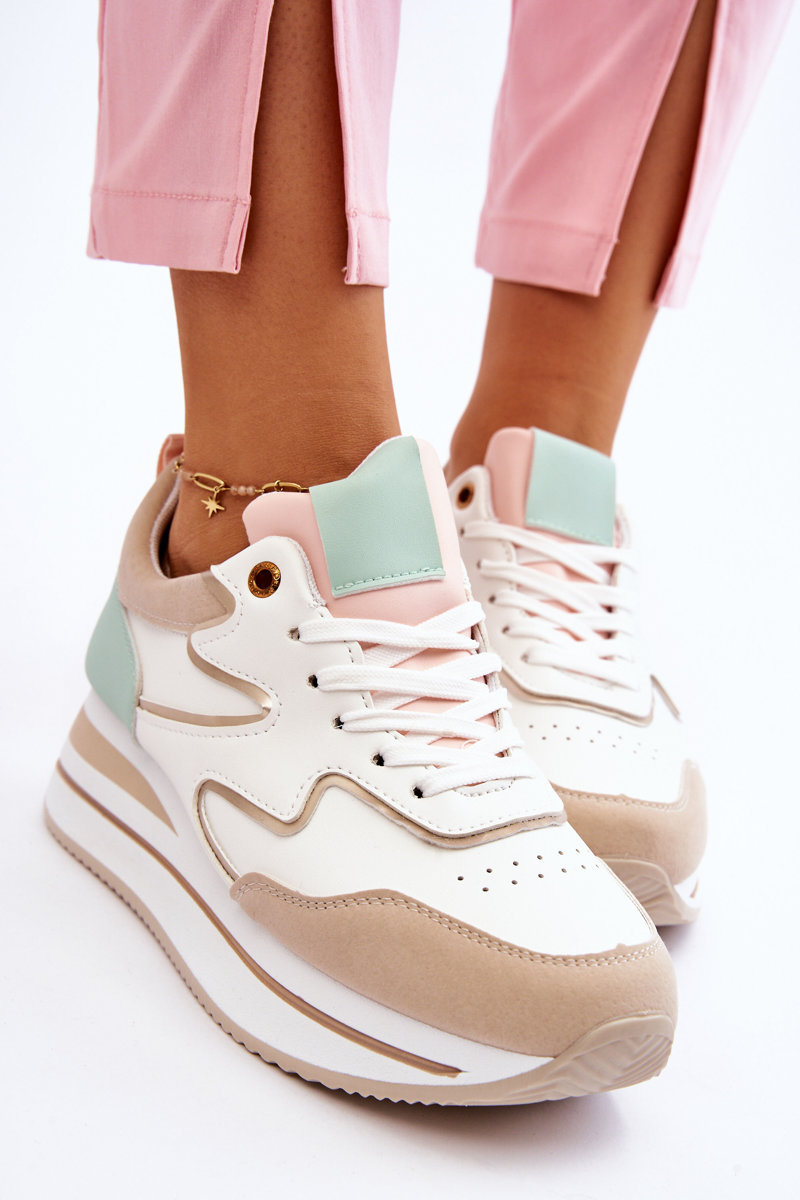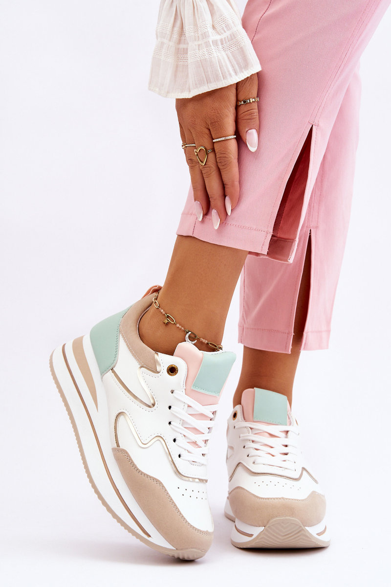 Módne športové topánky so zaujímavým rezom boli vyrobené z ekologickej kože. Majú jemnú perforáciu pri nose. Nastavené na platforme a jemný klin. Mäkká vložka je vyrobená z materiálu. Obuv má klasické šnurovanie. Pri výbere veľkosti postupujte podľa tabuľky veľkosti.