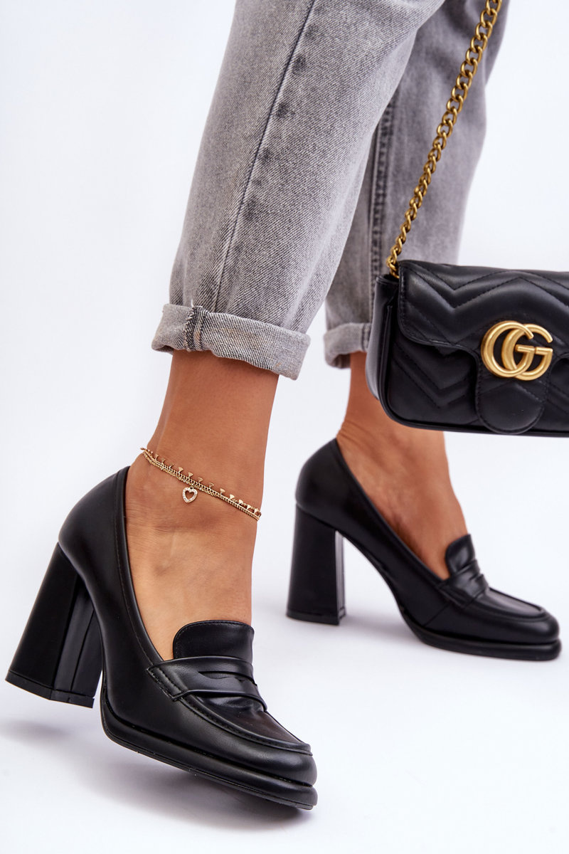 Tieto módne čerpadlá by mali byť vo vašom šatníku! Tento model je skĺznutý a má stuhnutú pätu. Mäkká vložka z kože zaisťuje vysoké pohodlie používania. Čerpadlá boli vložené na päty vo forme stabilného stĺpika a jemnej plošiny. Tento model je vynikajúci pre prácu, pre dôležité stretnutia alebo oslavy. Pri výbere veľkosti postupujte podľa tabuľky veľkosti