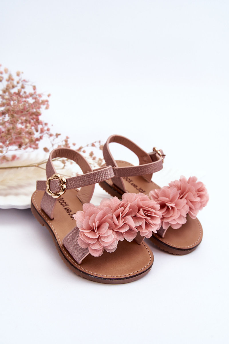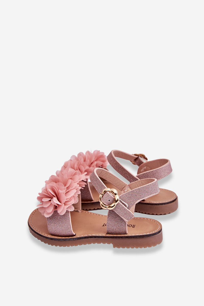 Módne detské sandále s kvetmi ružové polysy