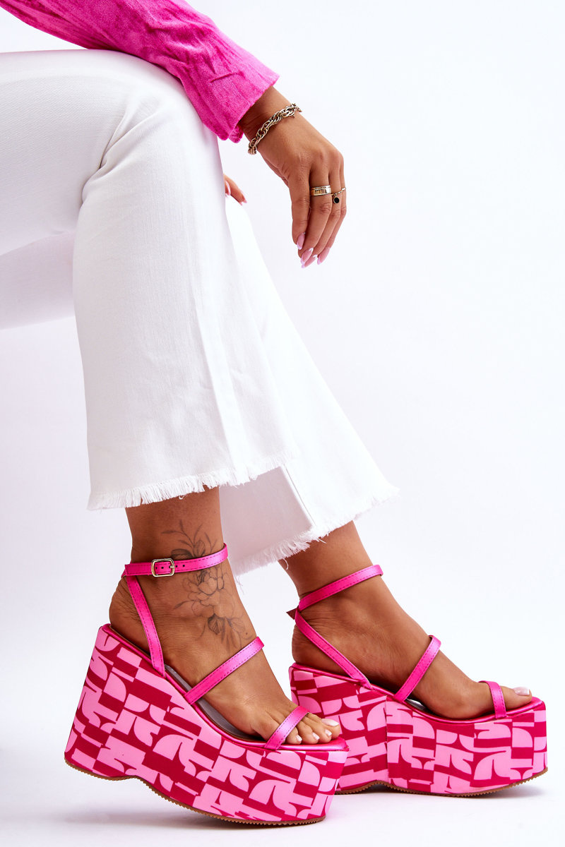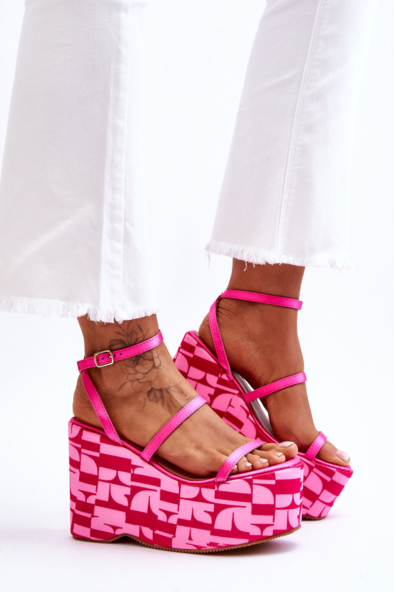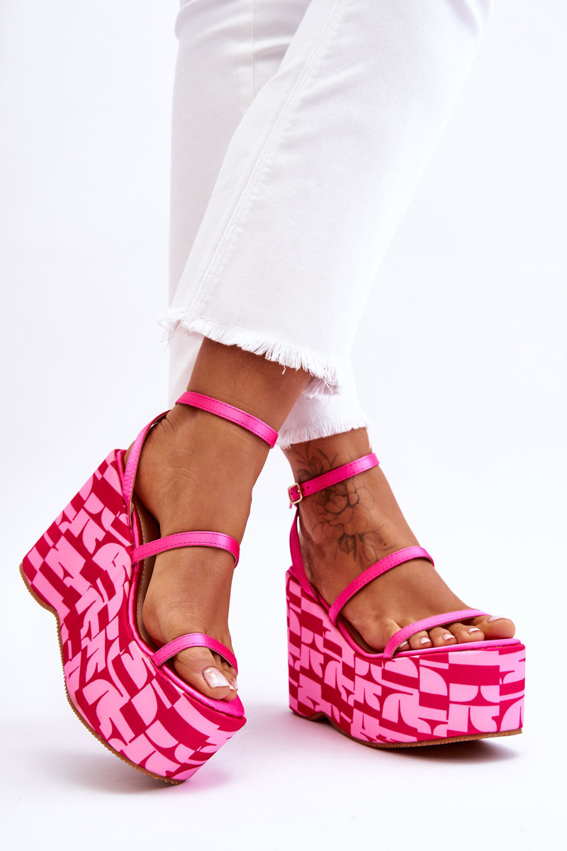 Módne klinové sandále so vzormi Fuksja Claria