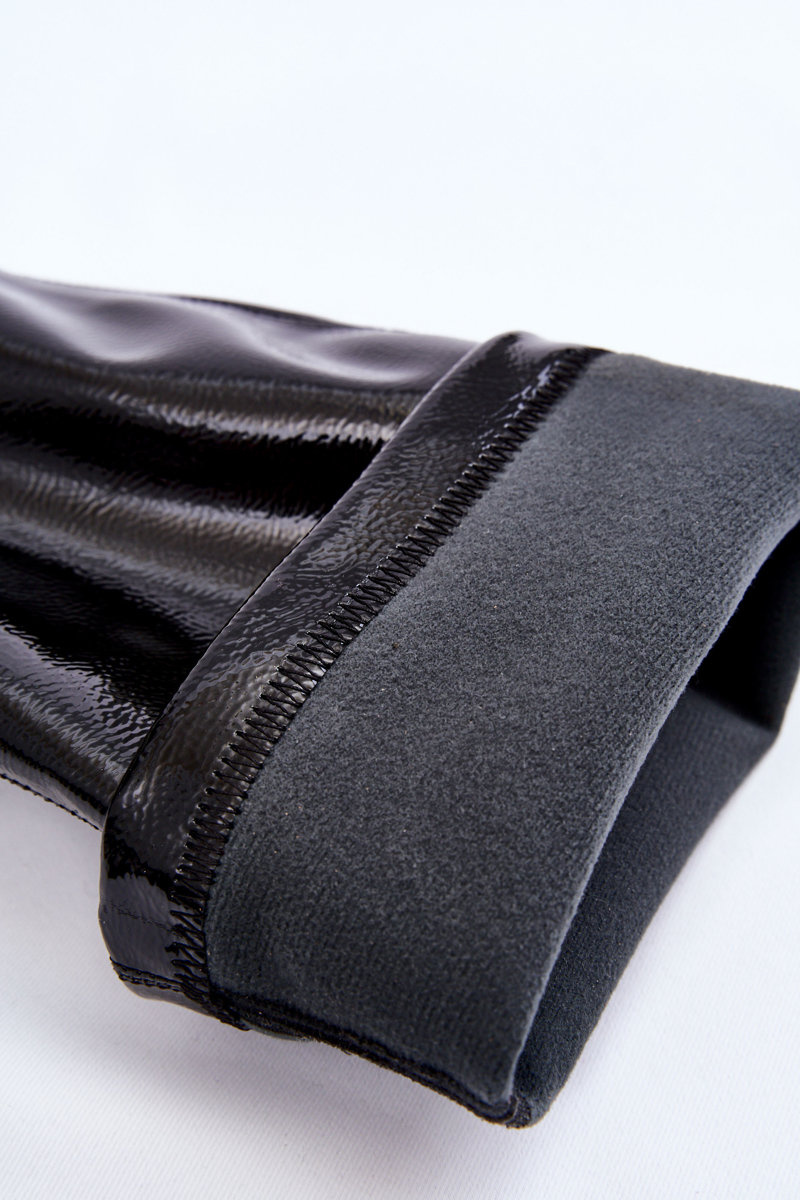 Módne lakované dámske topánky pred kolennou čiernou venise