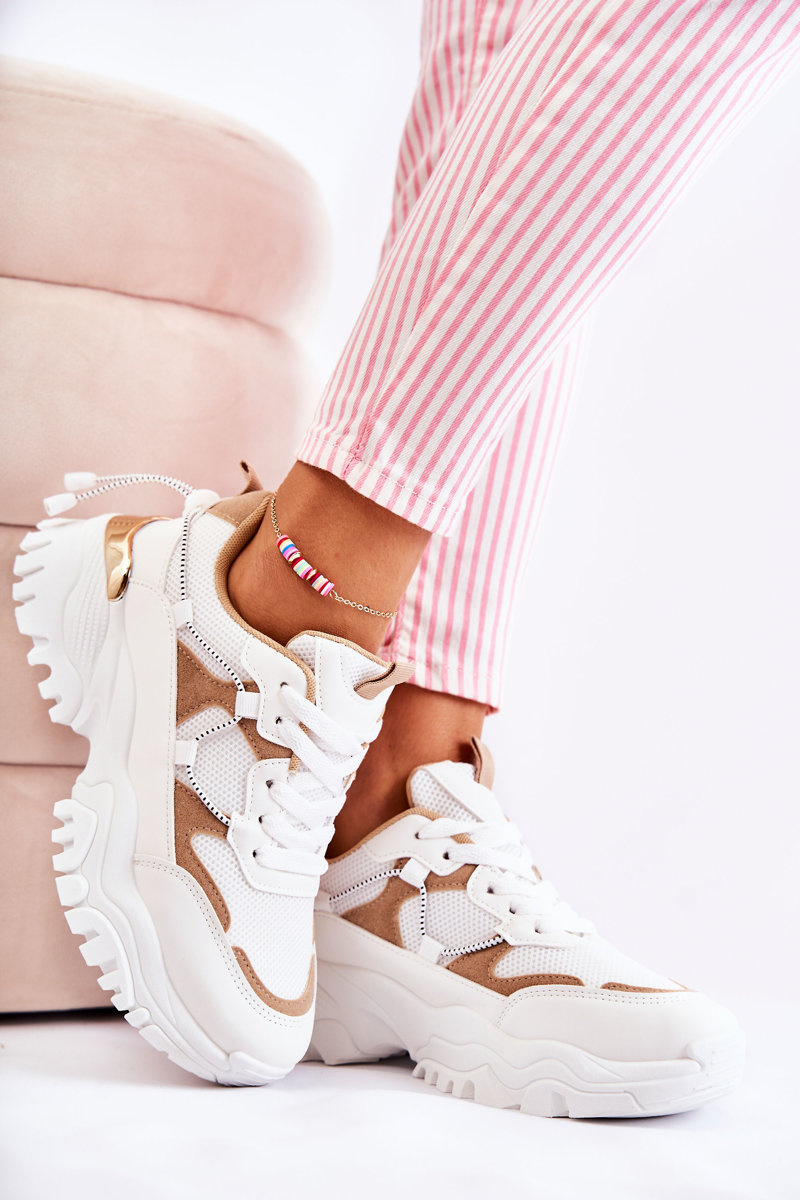 Dámske športové topánky boli vyrobené z priedušného materiálu s prvkami ekologického semišu a ekologickej kože. Zvukok členku s jemným. Model s väzbou, ktorý vám umožní správne namontovať obuv na nohu nohy. Topánky zabudované na masívnej plošine. Topánky sa dajú pohodlne používať vďaka mäkkej vložke materiálu. Model so zaobleným nosom. Na zadnej strane päty je dekoratívny, zrkadlový prvok a zvlnený. Pri výbere veľkosti postupujte podľa tabuľky veľkosti.