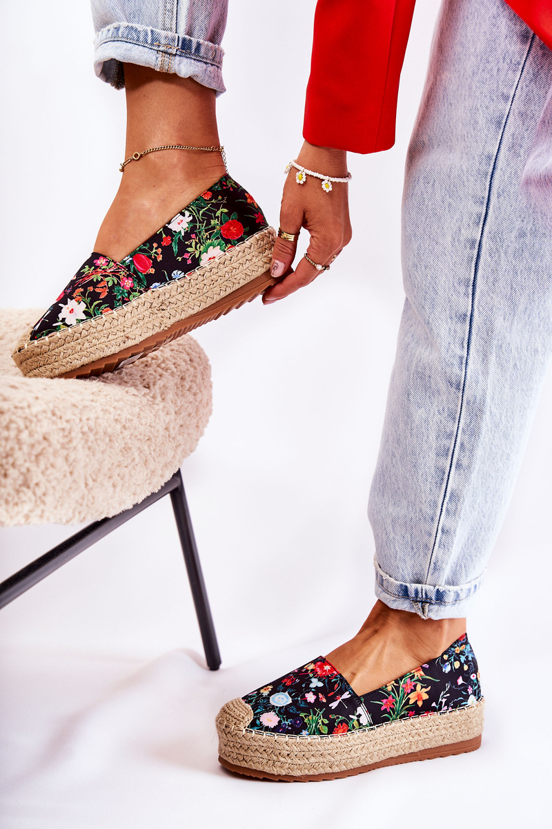 Espadrilles boli vyrobené z textilného materiálu do krásneho vzoru. Majú cop na zaoblenom nose. Platforma je zdobená jutovým copom. Podrážka je vyrobená z gumového plastu, ktorý je dodatočne nekĺzavý. Mäkká vložka vyrobená z ekologickej kože je veľmi výhodná na použitie. V tomto modeli sa budete cítiť sebaisto! Ideálne pre štýly s šortkami alebo vzdušnými šatami. Pri výbere veľkosti navrhnite tabuľku veľkosti.