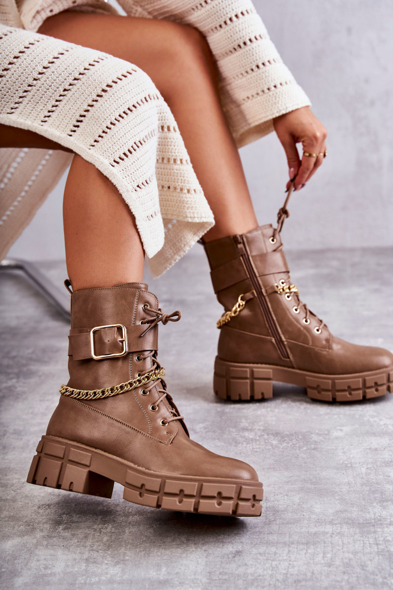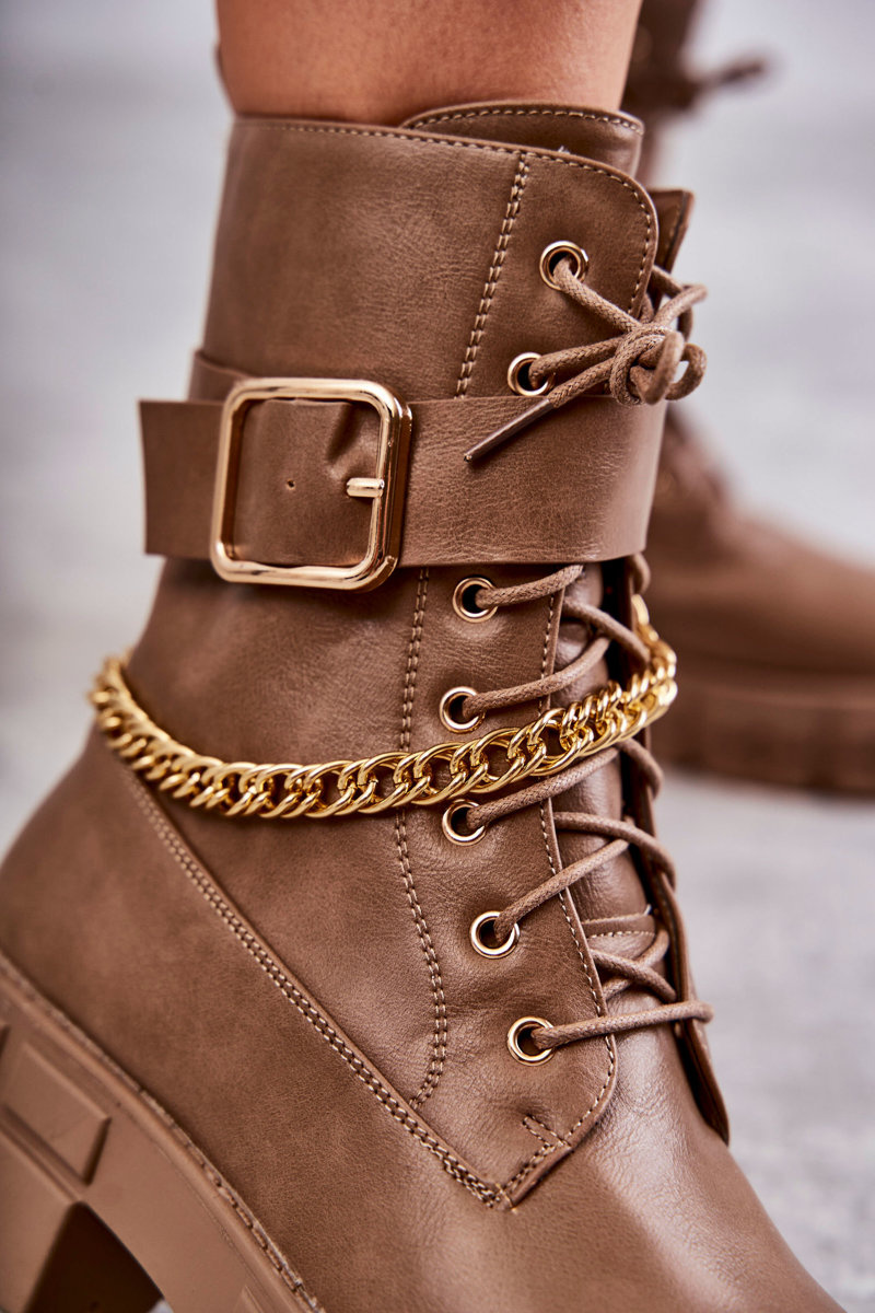 Módne pracovníčky topánky s hnedou reťazou smooletne