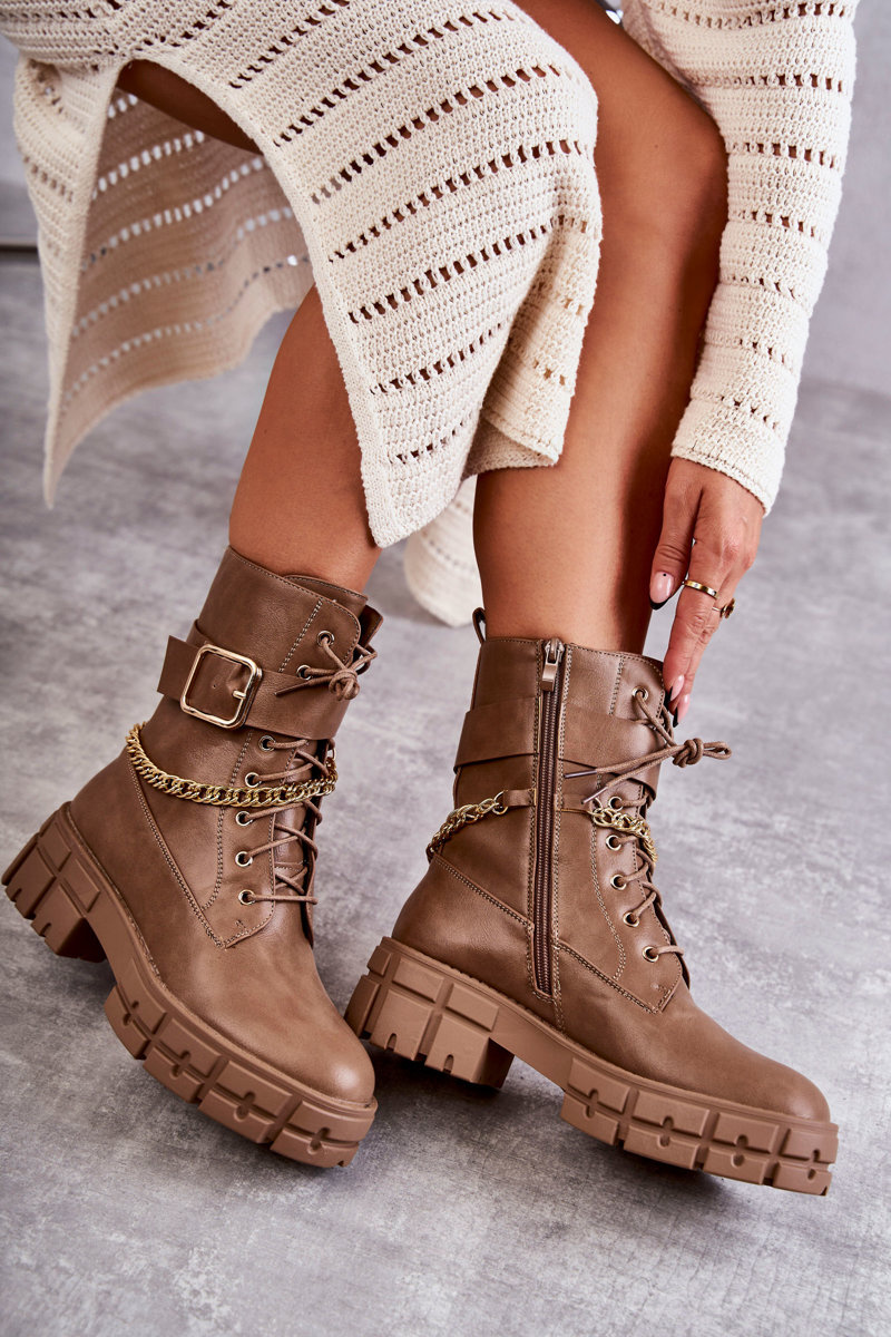 Nezvyčajné a štýlové topánky vyrobené z ekologickej kože. Zvršok so zipsom a priviazaný. Okrem toho majú topánky nastaviteľný pás s prackou. Dekoratívna reťaz je pripevnená k zvršku a nie je stiahnutá. Čižmy sú vyrobené z ekologickej kože. Majú otepľovanie vo forme prikrývky na obuv. Postavené na masívnej plochej päte a platforme. Pri výbere veľkosti navrhnite tabuľku veľkosti. /p>