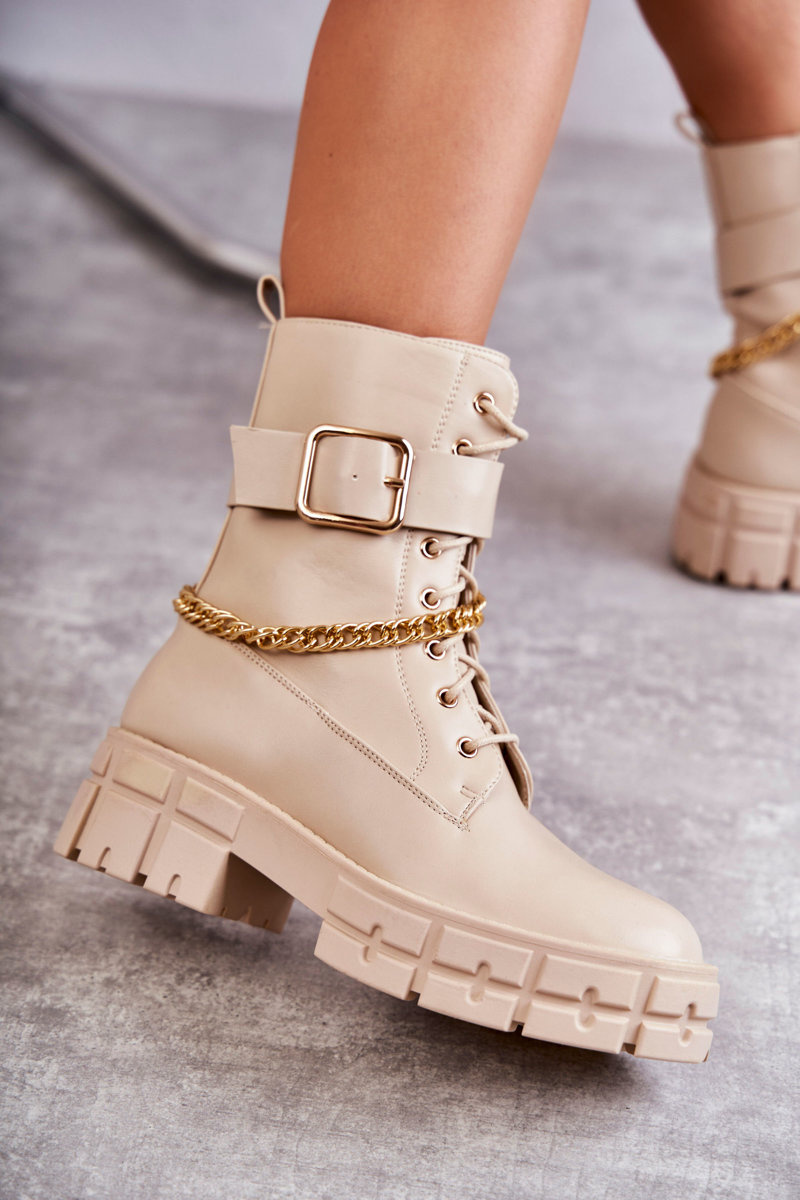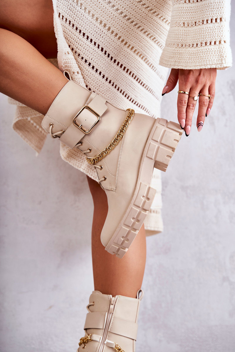 Módne pracovníčky topánky s reťazovým béžovým solesso