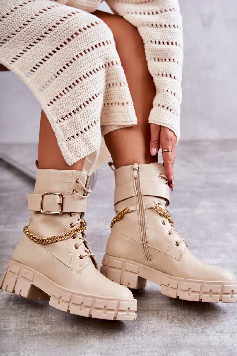 Nezvyčajné a štýlové topánky vyrobené z ekologickej kože. Zvršok so zipsom a priviazaný. Okrem toho majú topánky nastaviteľný pás s prackou. Dekoratívna reťaz je pripevnená k zvršku a nie je stiahnutá. Čižmy sú vyrobené z ekologickej kože. Majú otepľovanie vo forme prikrývky na obuv. Postavené na masívnej plochej päte a platforme. Pri výbere veľkosti navrhnite tabuľku veľkosti. /p>